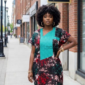 100% cotton. Made with high quality African Ankara fabric. Short danshiki Ankara dress with phoenix embroidery.