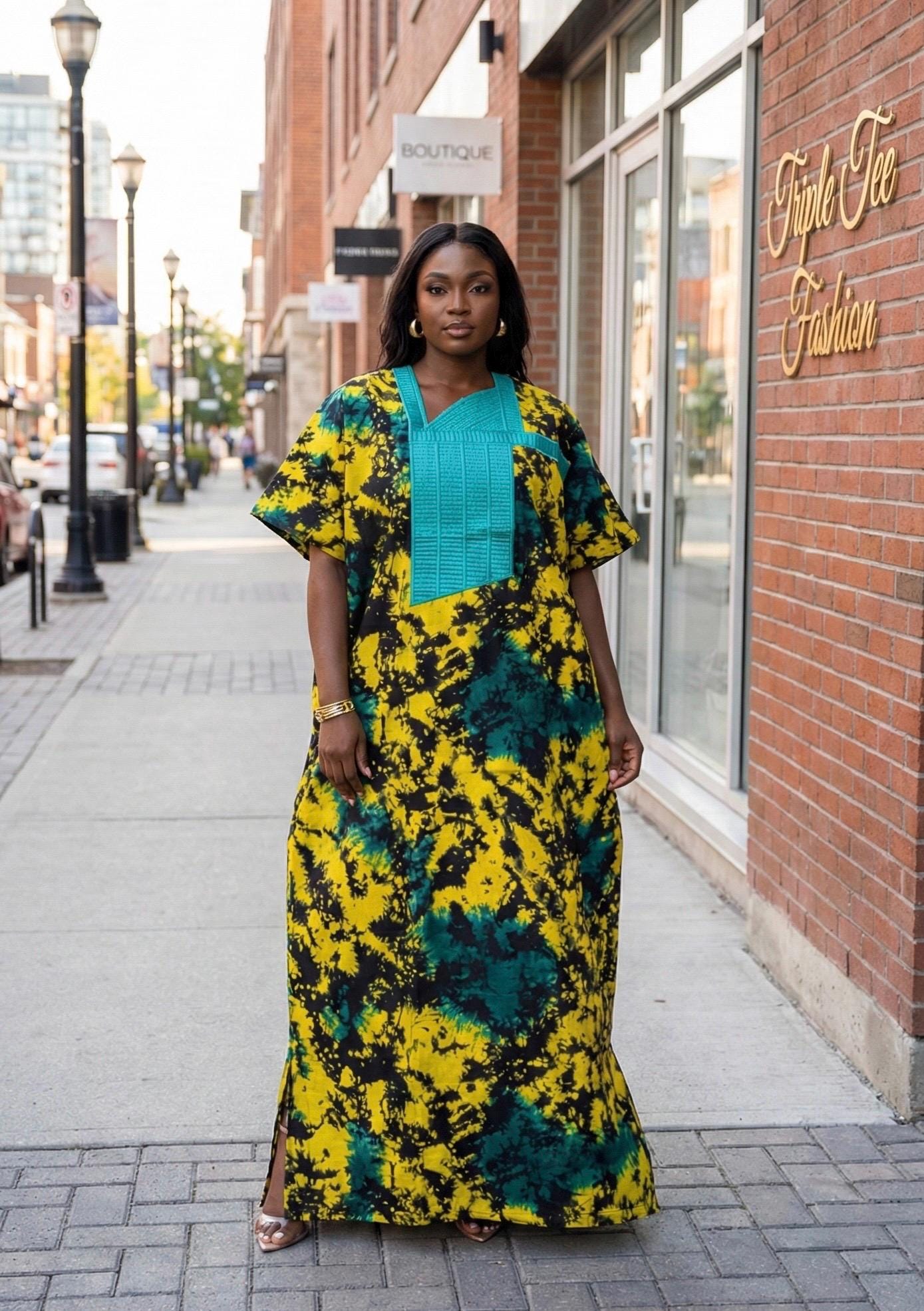 This ready-made dress is crafted from high-quality Ankara fabric, known for its vibrant colors and bold patterns. The phoenix embroidery adds a touch of elegance and uniqueness to this already beautiful piece.
