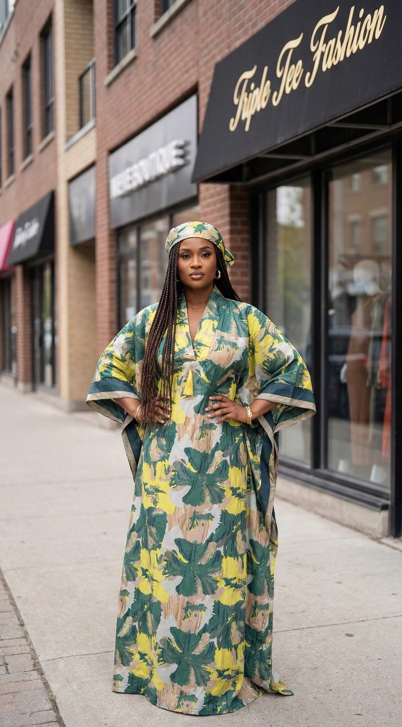 One size fits everyone. free size for US size 8 to 24. Please do not expect boubou to be small, Our Boubous are to give you the rich aunty vibes. Check out how it looks on our model. Ready-To-Wear and Ready-To-Ship.