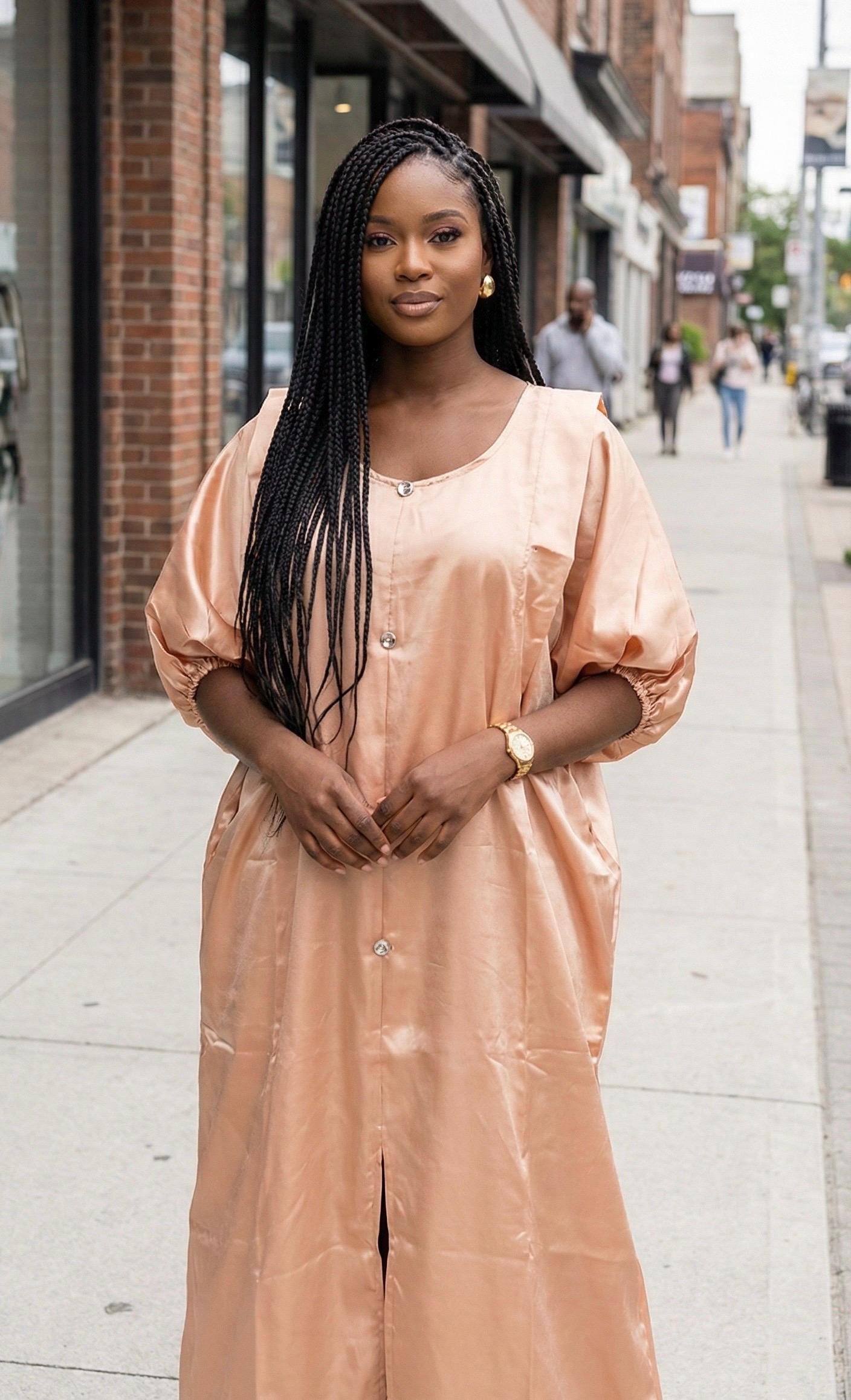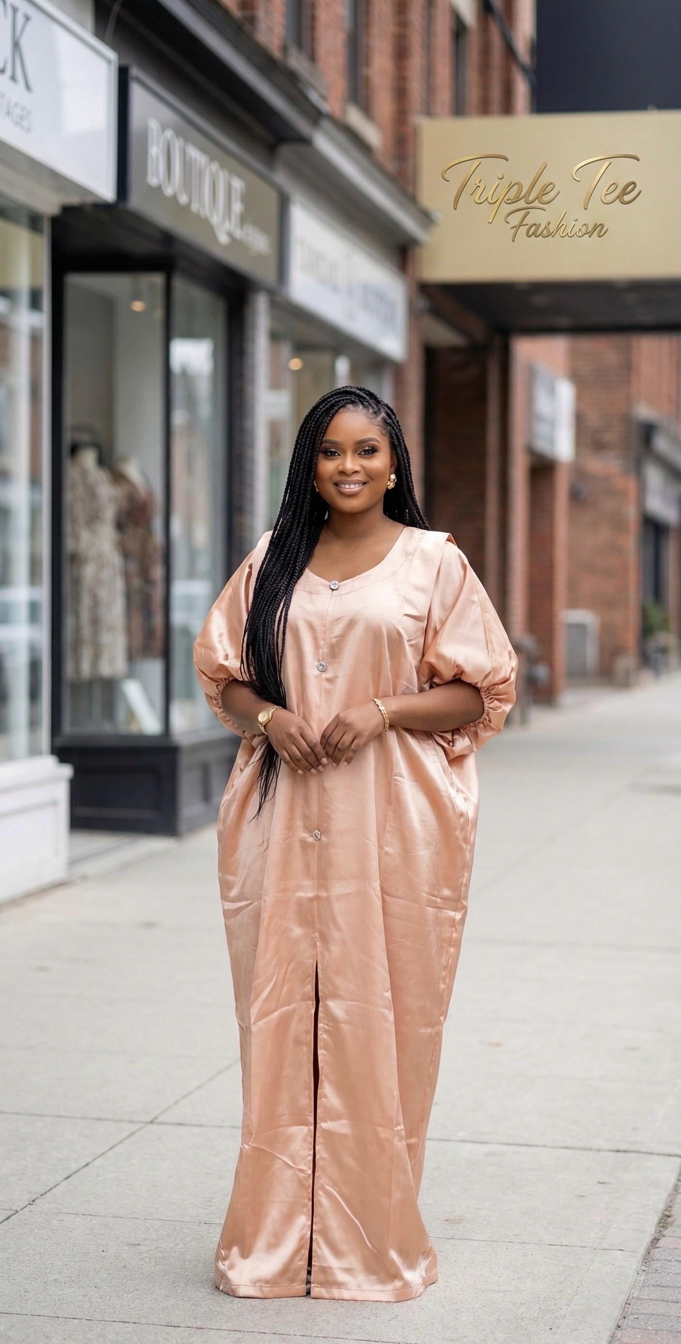 Elevate your wardrobe with our stunning African Liquid Mikado Silk Boubou Kaftan, a timeless piece that exudes elegance and cultural flair.
