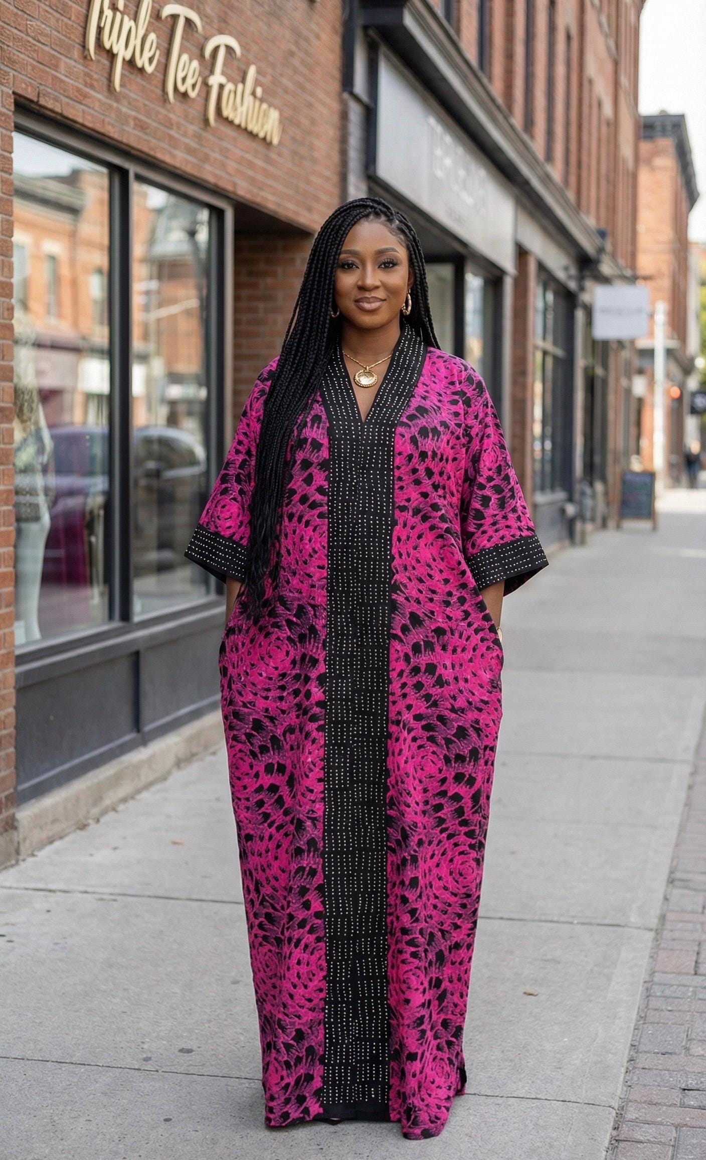 100% cotton. Made with African Ankara fabric. Perfectly stoned for a Queen and more!