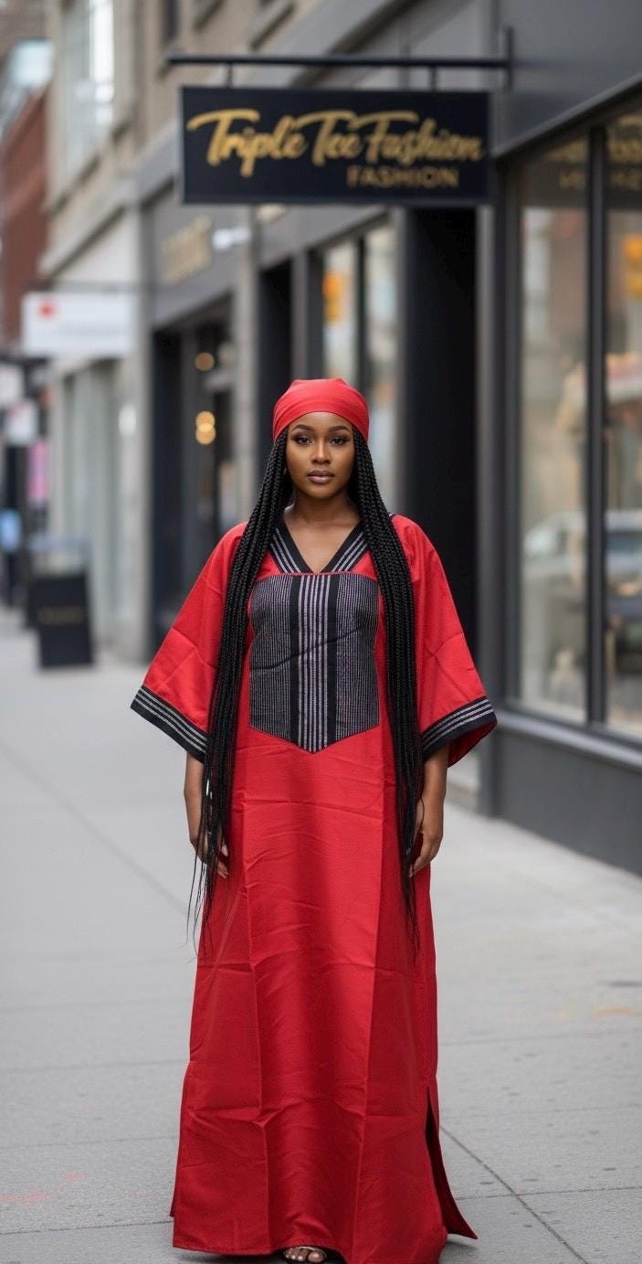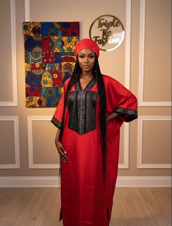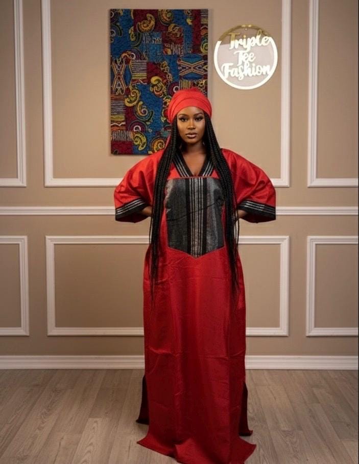 Outfit description - Made from mikado and aso oke. One size fits US size 8 to Size 20, It is a free size boubou. Comes with a cap to match.