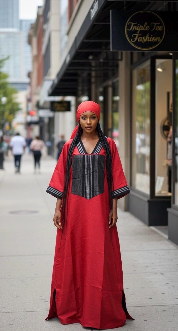 Fabric - Made with luxurious high quality mikado fabric with African Aso Oke in the neck area.