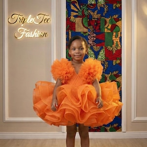 Beautiful African baby girl boubou made with vibrant ankara fabric, featuring intricate patterns and bold colors.