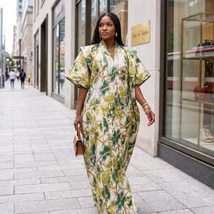 Our stunning Adire boubou, a fusion of traditional Nigerian textiles and contemporary elegance. Crafted with meticulous attention to detail, this exquisite garment features a mesmerizing combination of Adire fabri, celebrating the rich heritage of Nigerian craftsmanship.