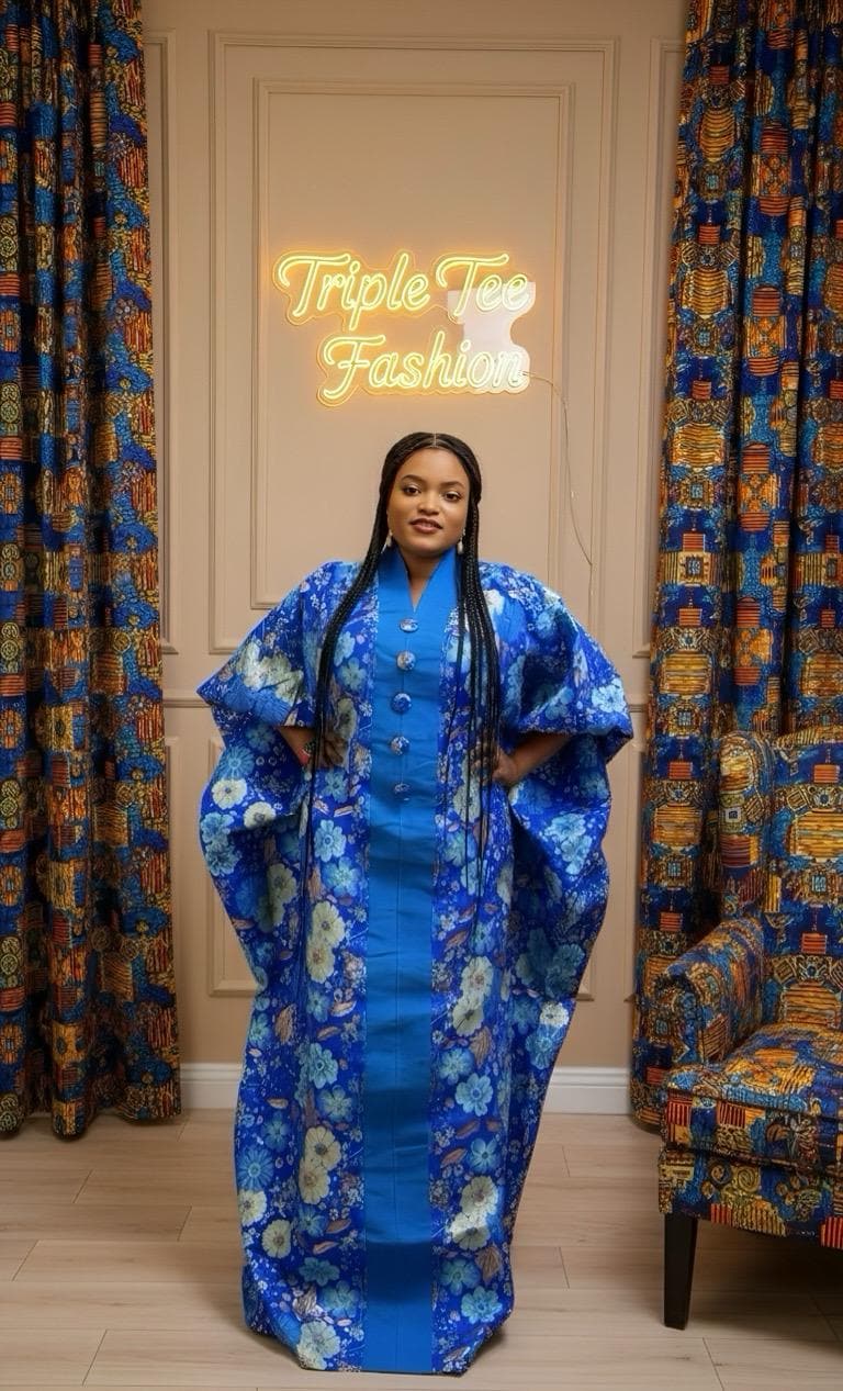 Made with luxurious high quality European brocade and African aso oke in the middle. You need to feel and see the richness in this outfit. One size fits everyone. free size for US size 6 to 24.