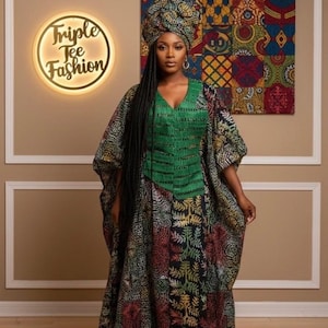 Our stunning Adire boubou, a fusion of traditional Nigerian textiles and contemporary elegance. Crafted with meticulous attention to detail, this exquisite garment features a mesmerizing combination of Adire fabri, celebrating the rich heritage of Nigerian craftsmanship.