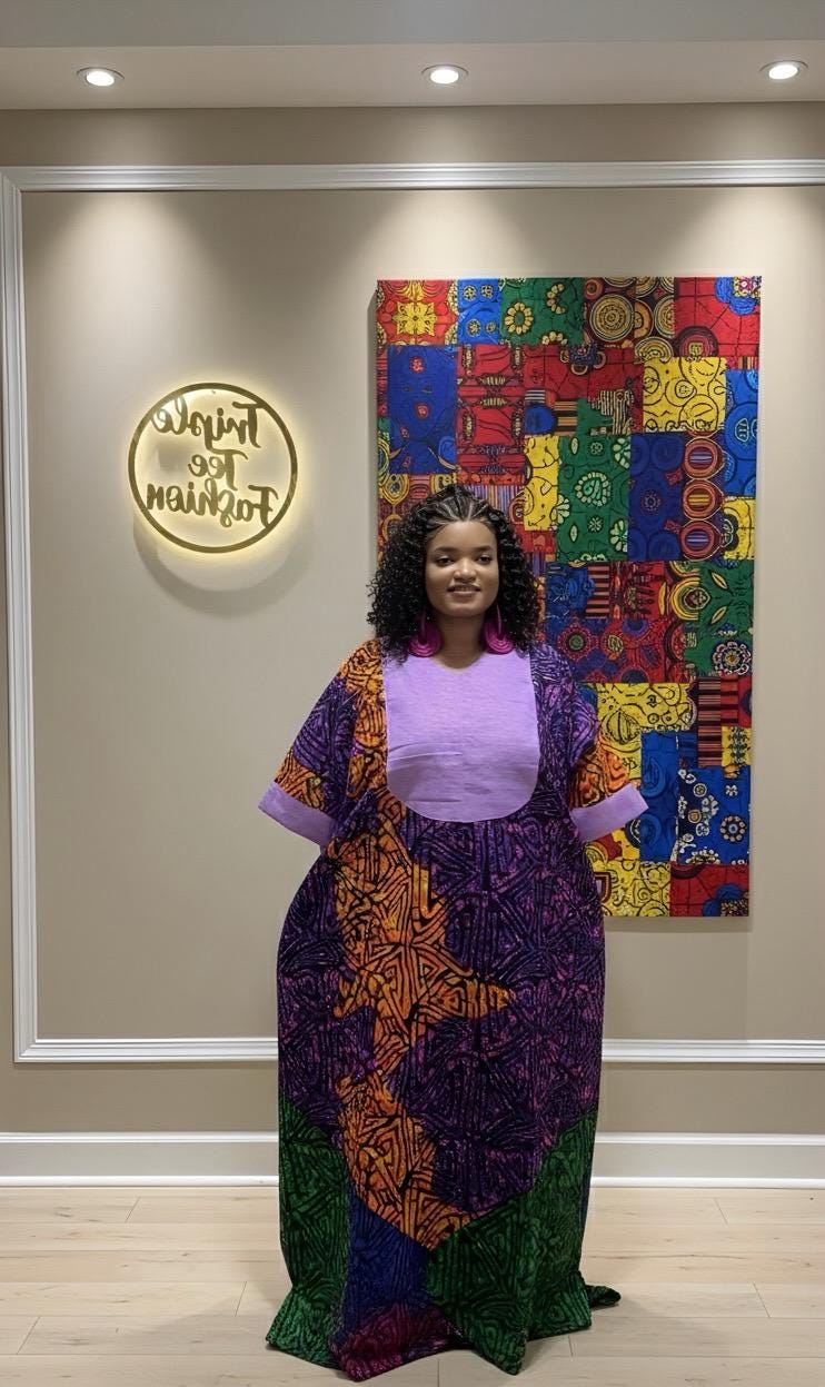 The item arrived sooner than expected. The kaftan is exactly as pictured with great quality. I can't wait to wear it for Thanksgiving.