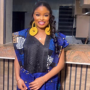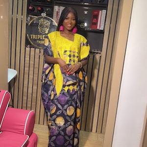 Our stunning Adire boubou, a fusion of traditional Nigerian textiles and contemporary elegance. Crafted with meticulous attention to detail, this exquisite garment features a mesmerizing combination of Adire fabri, celebrating the rich heritage of Nigerian craftsmanship.