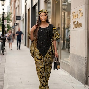 This masterpiece can be worn in 4 ways; 1. Wear as a Royalty; all 3 pieces 2. Simply wear just the boubou gown 3. Wear the boubou with the belt 4. Simply wear the kimono with any outfit.