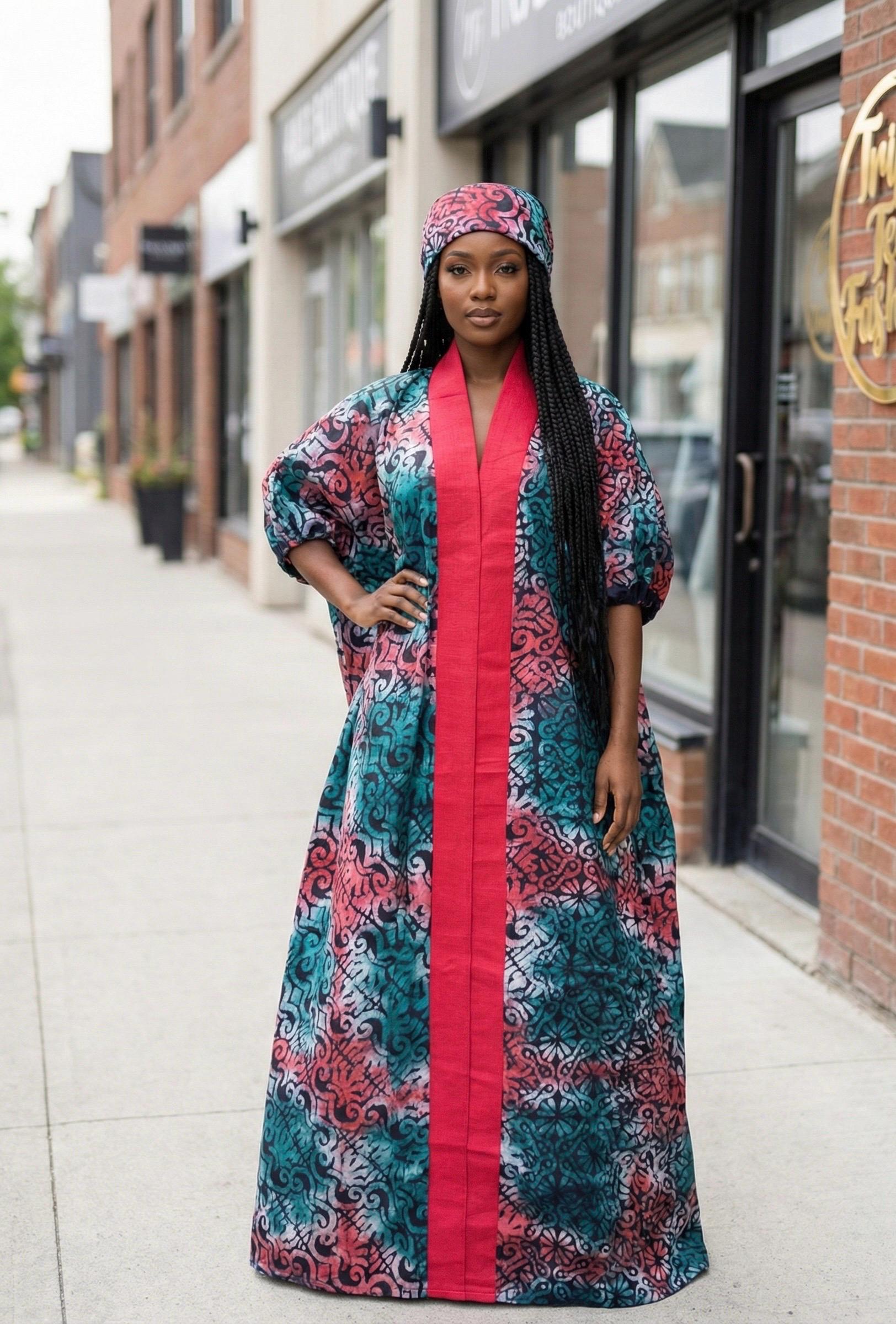 Our stunning Adire boubou, a fusion of traditional Nigerian textiles and contemporary elegance. Crafted with meticulous attention to detail, this exquisite garment features a mesmerizing combination of Adire fabri, celebrating the rich heritage of Nigerian craftsmanship.