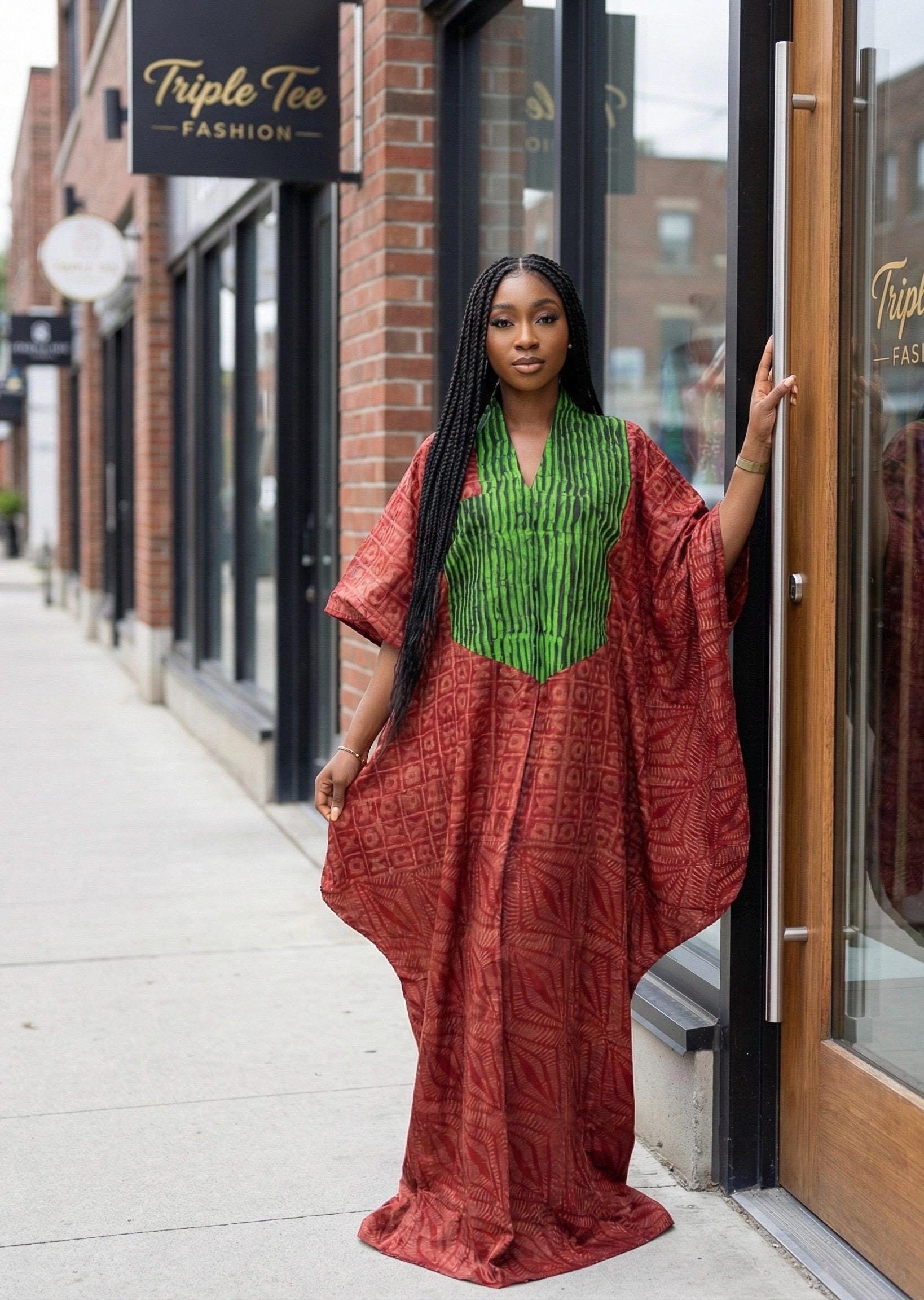 Our stunning Adire boubou, a fusion of traditional Nigerian textiles and contemporary elegance.