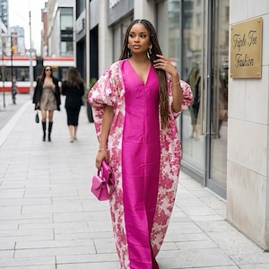 Size: One size fits all. One size fits US size 8 to Size 24, It is a free size boubou. It has an inner belt to make it fit.