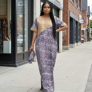 Size: One size fits all. One size fits US size 8 to Size 24, It is a free size boubou. It has an inner belt to make it fit.