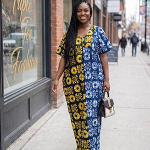 Outfit description - Made from mikado and Adire. One size fits US size 8 to Size 24, It is a free size boubou.