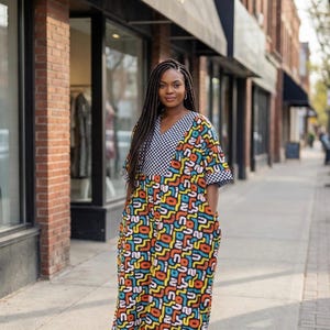 Outfit description - Made from liquid mikado and aso oke. One size fits US size 8 to Size 24, It is a free size boubou.