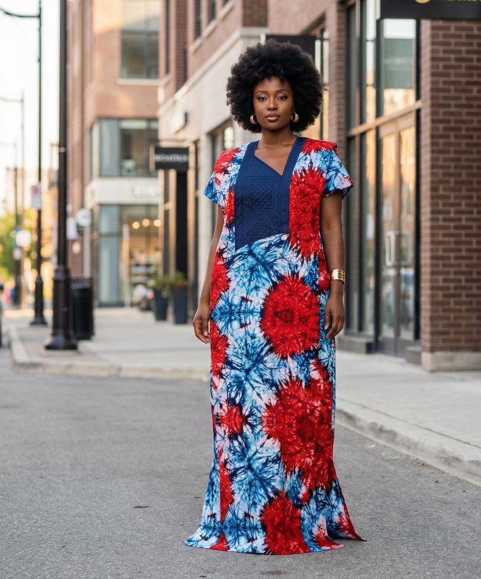 This ready-made dress is crafted from high-quality Ankara fabric, known for its vibrant colors and bold patterns. The phoenix embroidery adds a touch of elegance and uniqueness to this already beautiful piece.