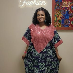 Outfit description - Made from mikado and aso oke. One size fits US size 8 to Size 20, It is a free size boubou. Comes with a cap to match.