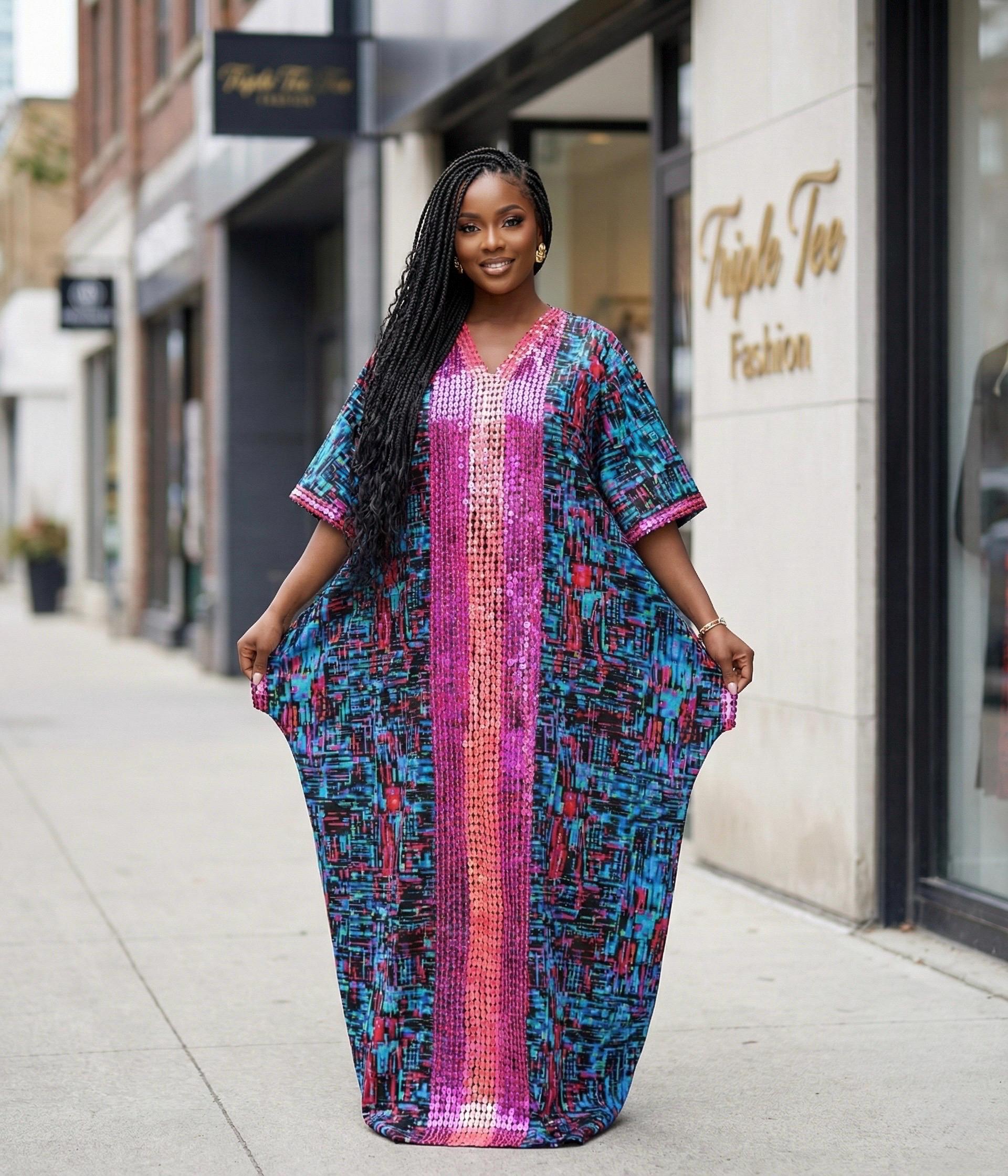 Handmade Ankara Beaded Boubou Dress | African Kaftan