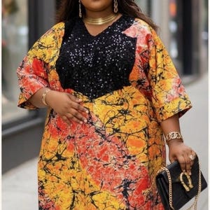 Size: One size fits all to US size 24. It’s a free size boubou kaftan.