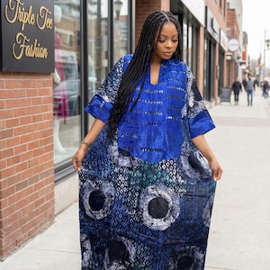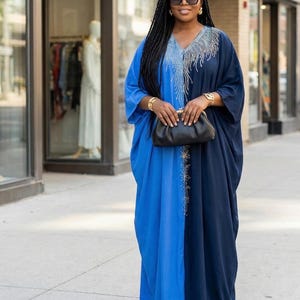 One Size fits US size 4 to 24, It’s a free size boubou kaftan with an inner belt.