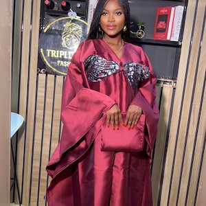 This ready-made dress is crafted from high-quality Ankara fabric, known for its vibrant colors and bold patterns. The phoenix embroidery adds a touch of elegance and uniqueness to this already beautiful piece.