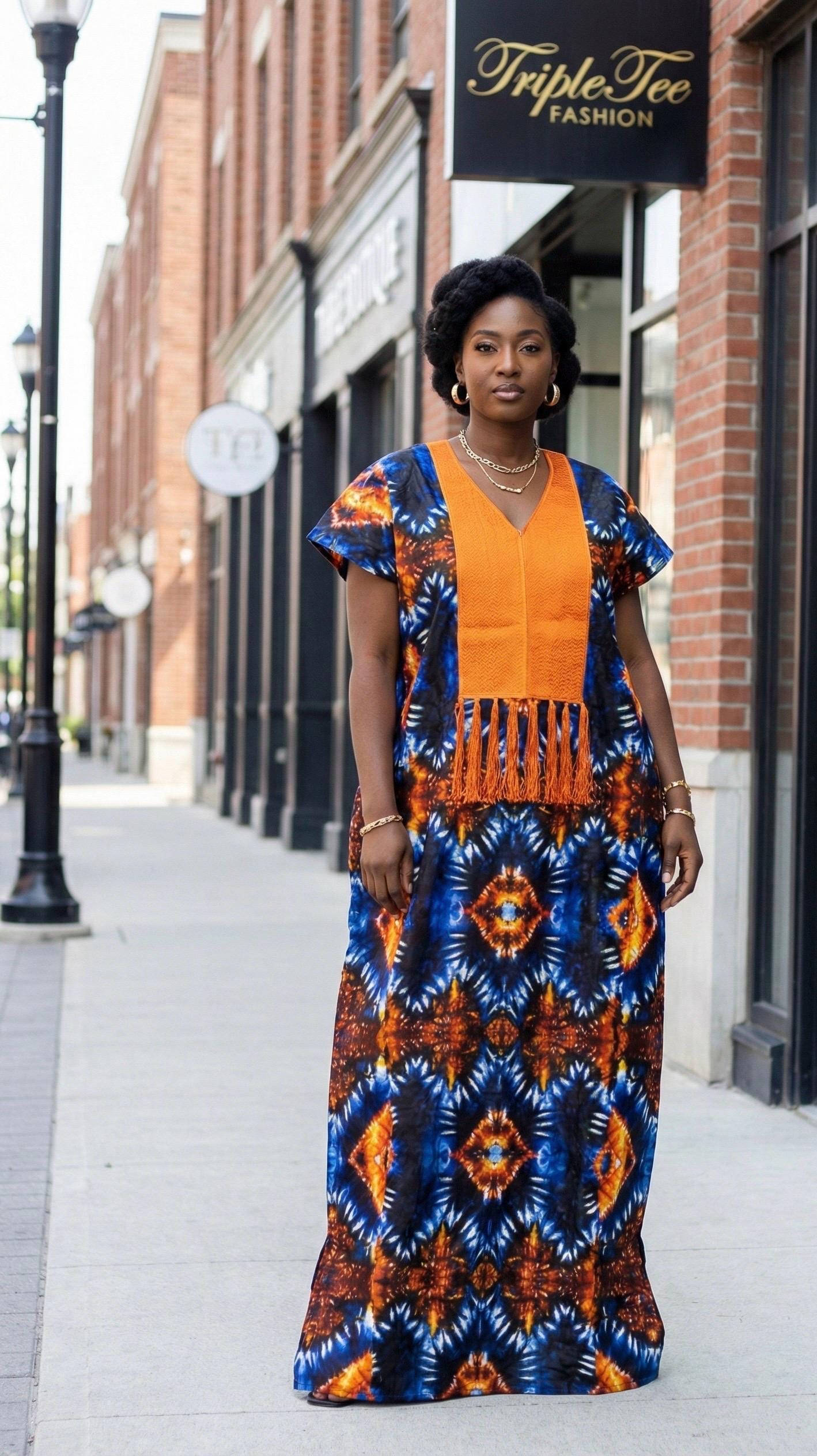 Stand out from the crowd with this eye-catching African dress! Perfect for special occasions or everyday wear.