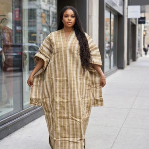 Size: One size fits all to US size 24. It’s a free size boubou kaftan. It has an inner belt to tie to make it snatch the waist. Can be worn with or without the inner belt.