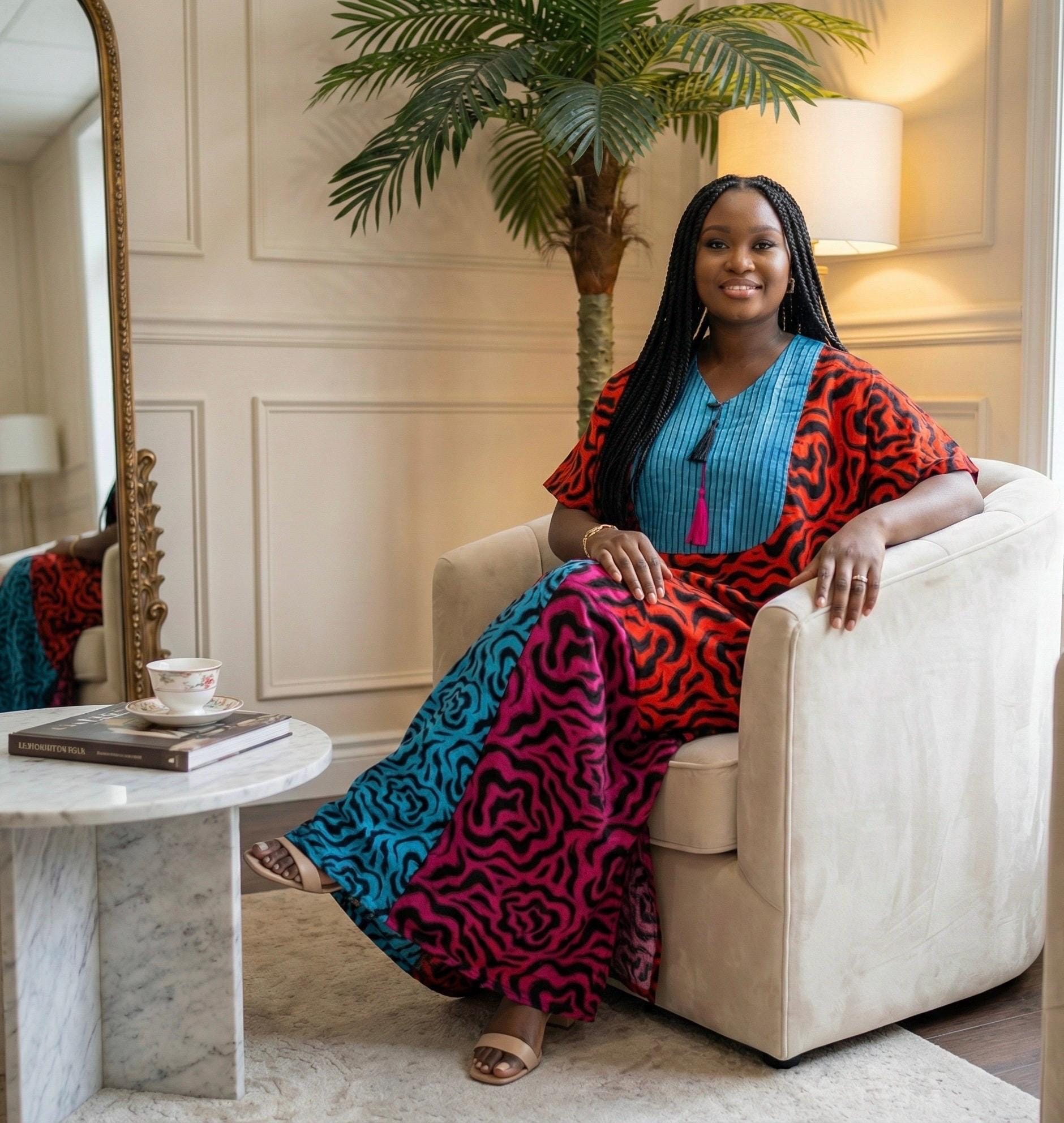 One Size fits US size 4 to 20, It’s a free size boubou kaftan.