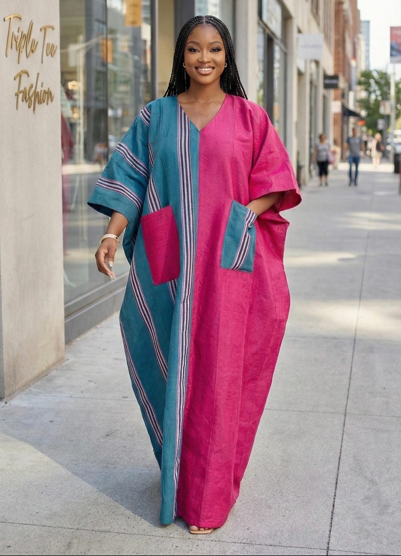 Elevate your wardrobe with this exquisite ASO OKE boubou kaftan, meticulously crafted to capture the essence of traditional Nigerian attire. Handmade from authentic ASO OKE sourced from Osogbo in Nigerian, each piece exudes quality and heritage.