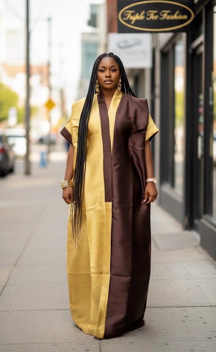 Elevate your wardrobe with our stunning African Mikado Silk Boubou Kaftan, a timeless piece that exudes elegance and cultural flair.
