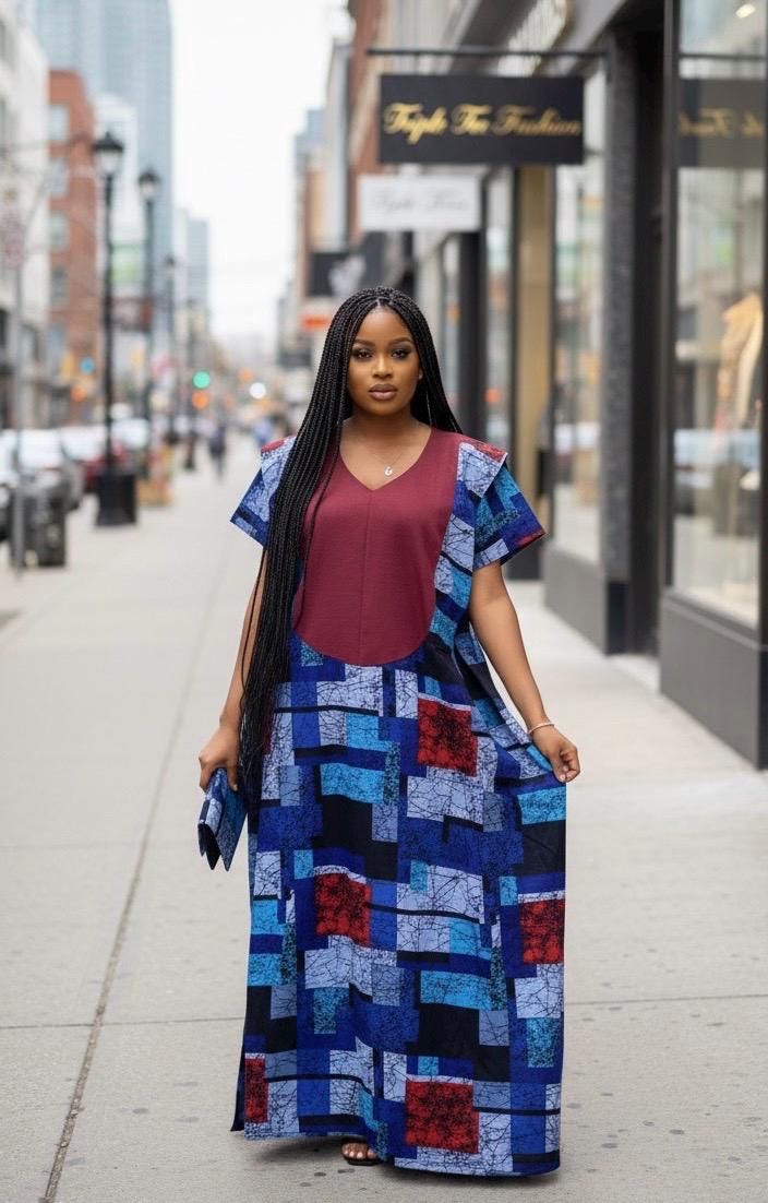 One Size fits US size 4 to 20, It’s a free size boubou kaftan.