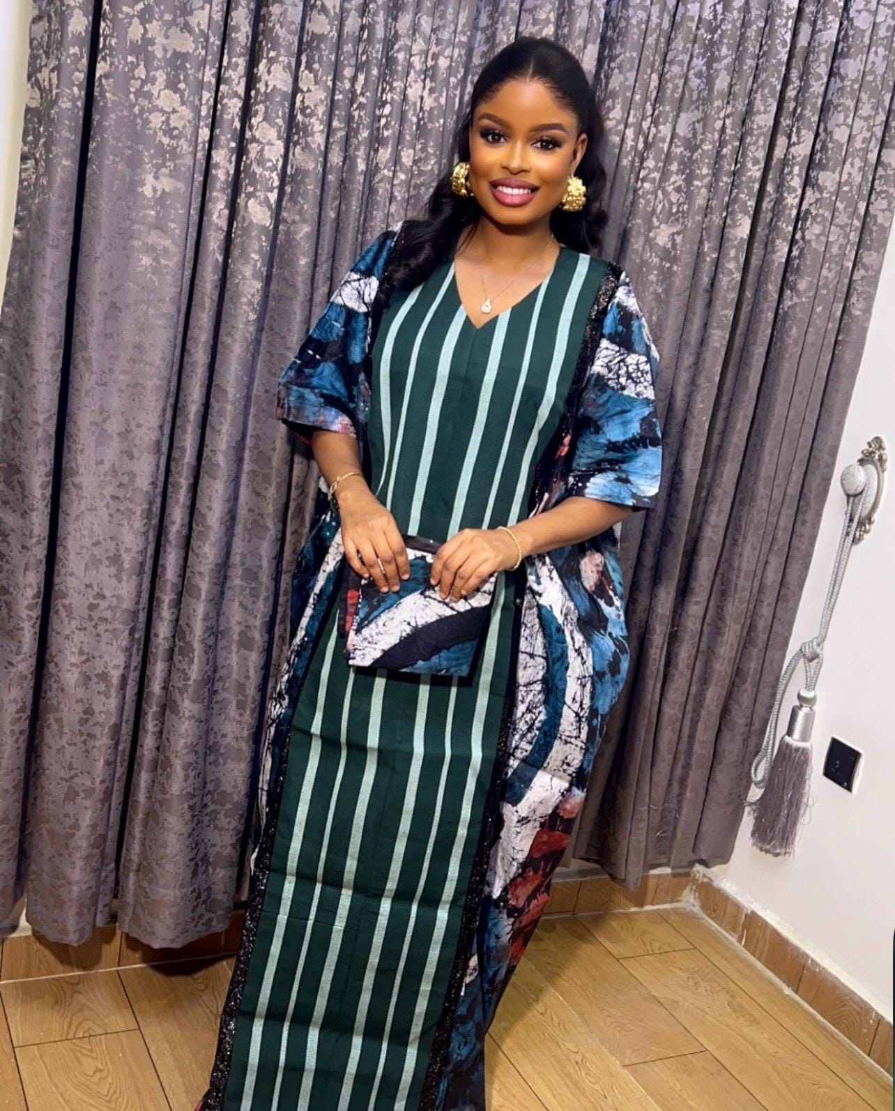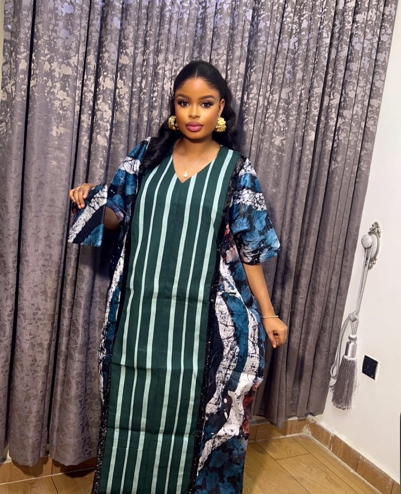 Designed with a thoughtful inner belt, this boubou ensures a flattering fit and effortless wearability, allowing you to move with grace and confidence. Whether worn for cultural ceremonies, special occasions, or everyday elegance, our Adire and Aso Oke boubou is a timeless statement piece that embodies the essence of Nigerian tradition and contemporary style. Elevate your wardrobe with this unique masterpiece that celebrates heritage and craftsmanship in every stitch.