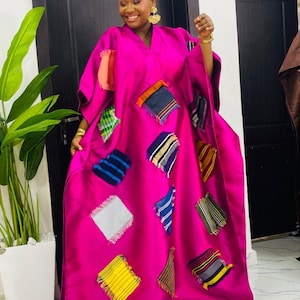• Top: A red t-shirt, upgraded with a glittering centerpiece that pops with every move. • Bottoms: Wide-leg Ankara cotton pants, showcasing rich floral patterns and breathable comfort.