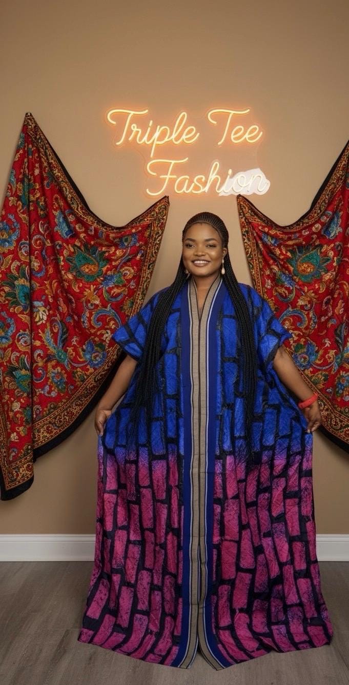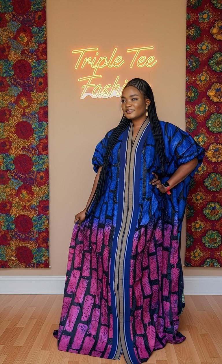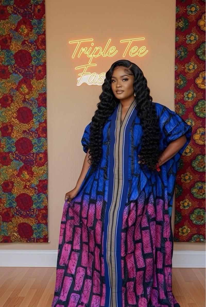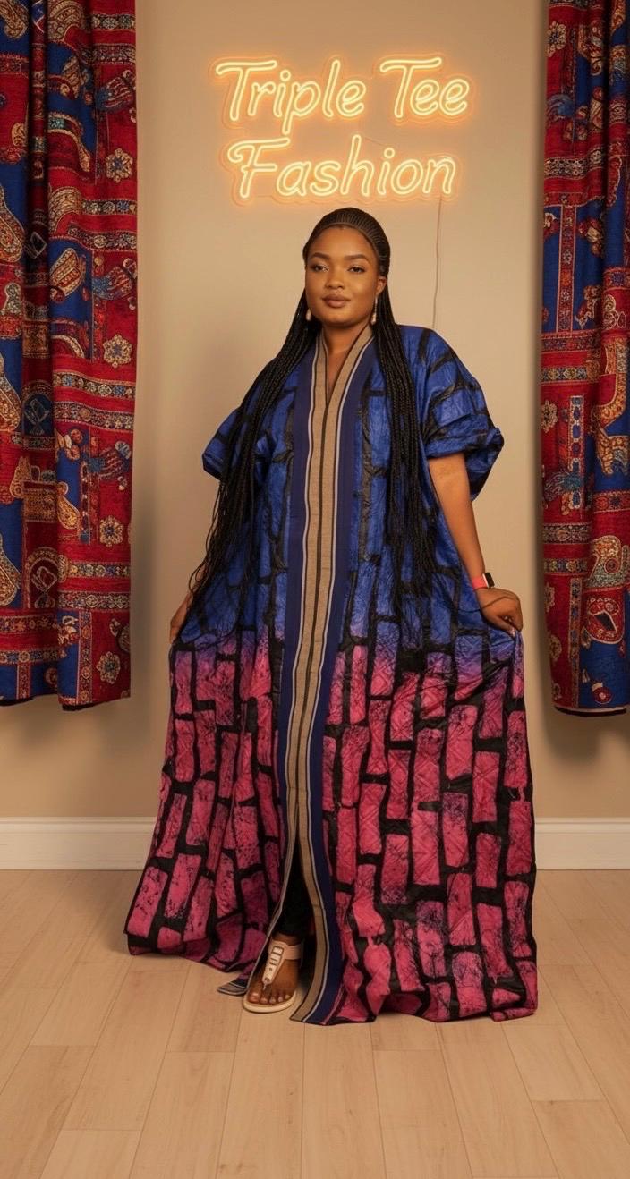 Our stunning Adire boubou, a fusion of traditional Nigerian textiles and contemporary elegance. Crafted with meticulous attention to detail, this exquisite garment features a mesmerizing combination of Adire fabri, celebrating the rich heritage of Nigerian craftsmanship.