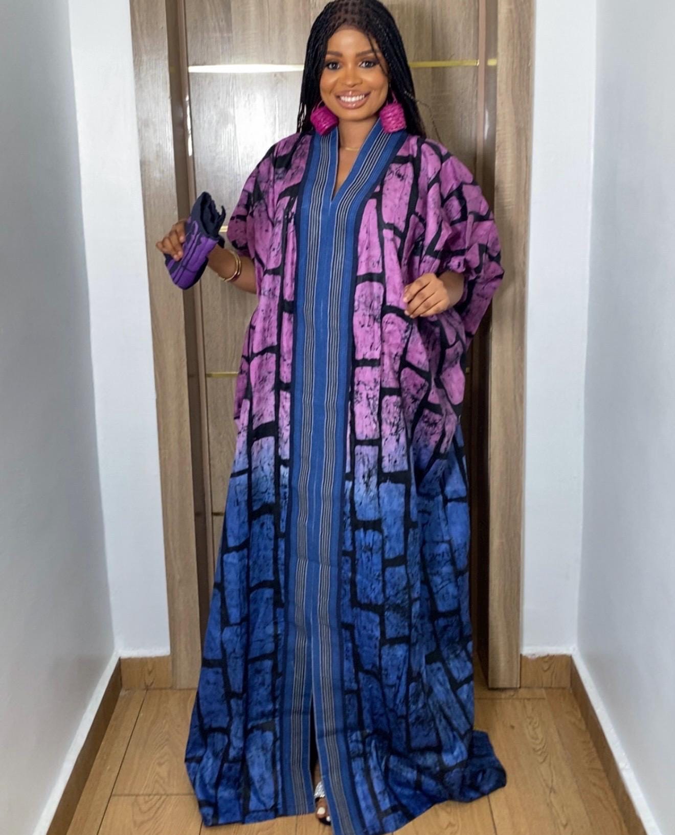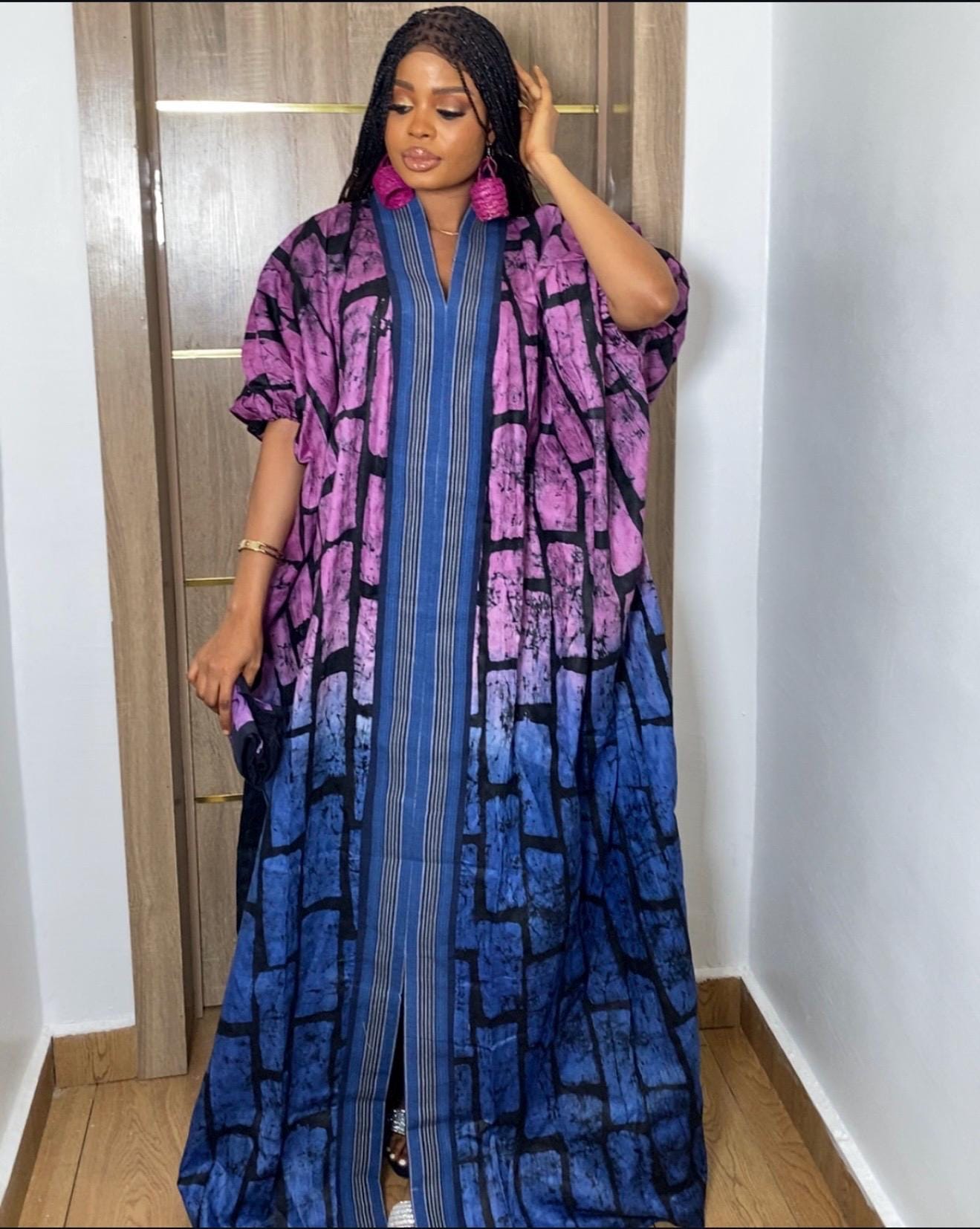 Our stunning Adire boubou, a fusion of traditional Nigerian textiles and contemporary elegance. Crafted with meticulous attention to detail, this exquisite garment features a mesmerizing combination of Adire fabri, celebrating the rich heritage of Nigerian craftsmanship.
