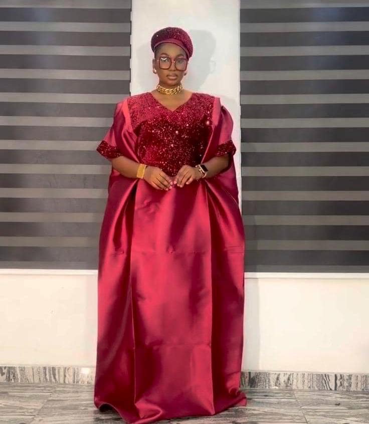 Outfit description - Made from mikado and Sequence. One size fits US size 8 to Size 24, It is a free size boubou. Comes with a cap to match.