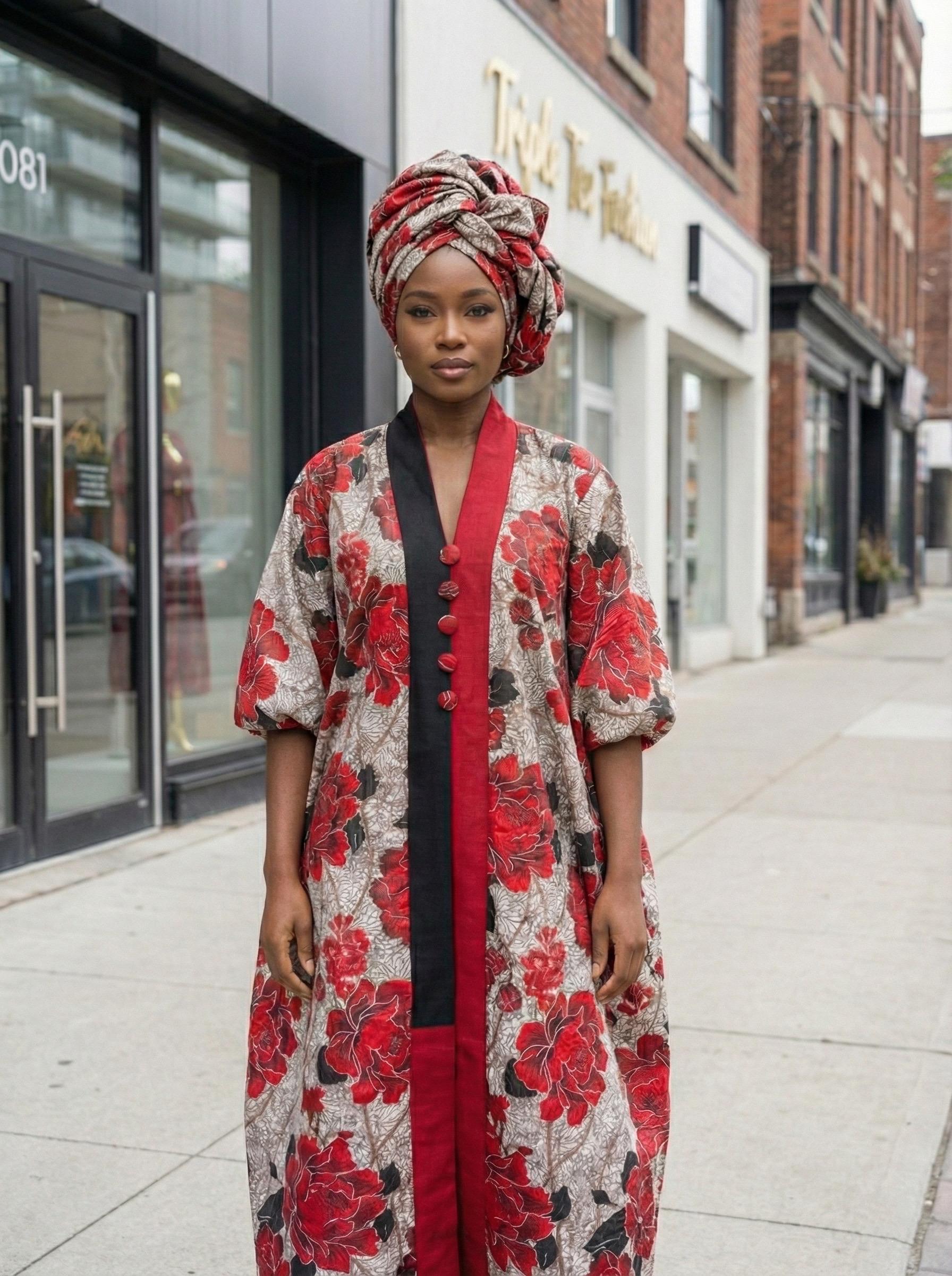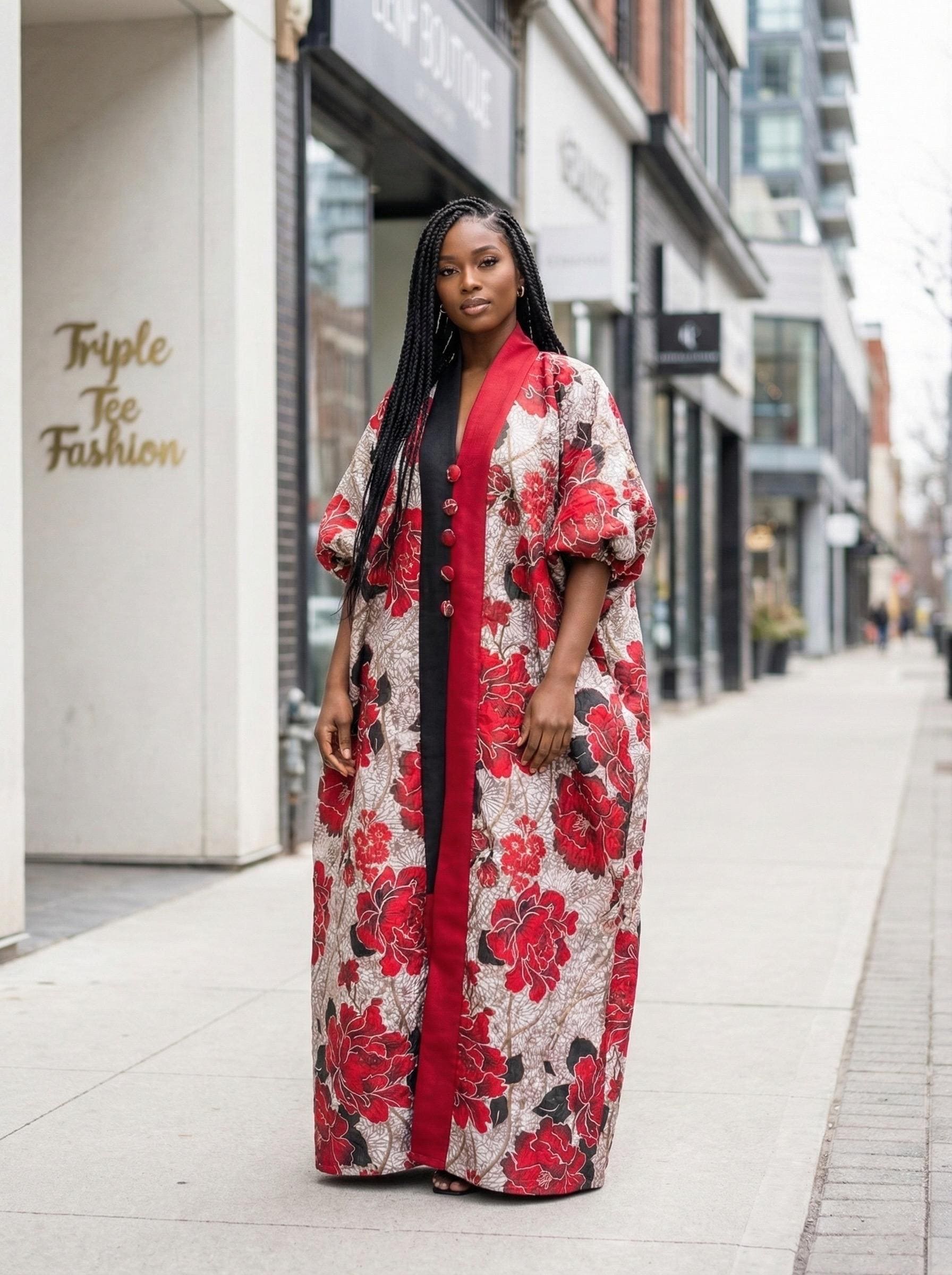 Made with luxurious high quality European brocade and African aso oke in the middle. You need to feel and see the richness in this outfit. One size fits everyone. free size for US size 6 to 24.