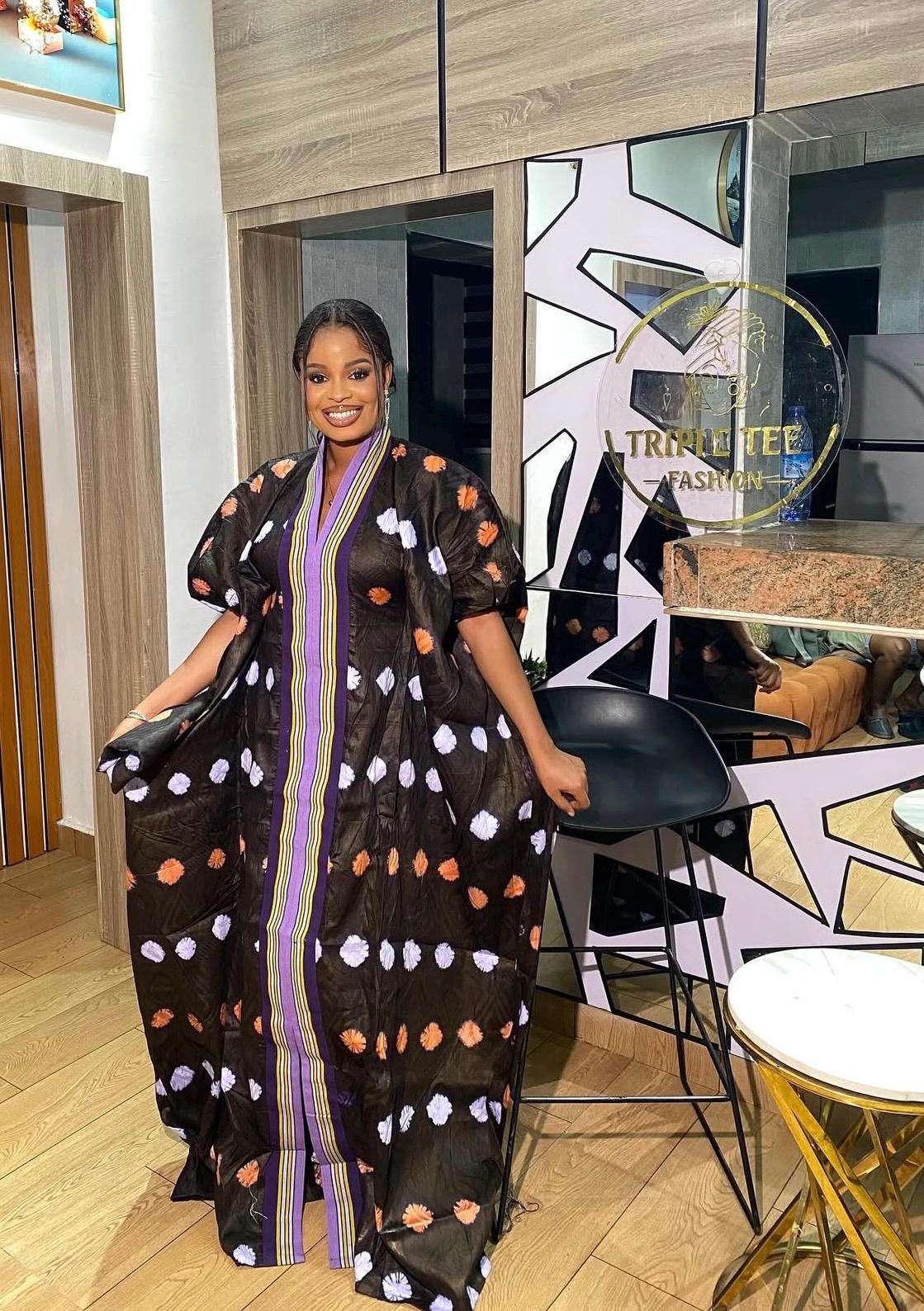 The outer layer, adorned with intricate Adire patterns created through traditional resist dyeing techniques, exudes cultural charm and authenticity. Paired with the Aso Oke, woven with exquisite craftsmanship, this boubou offers a luxurious blend of textures and colors.