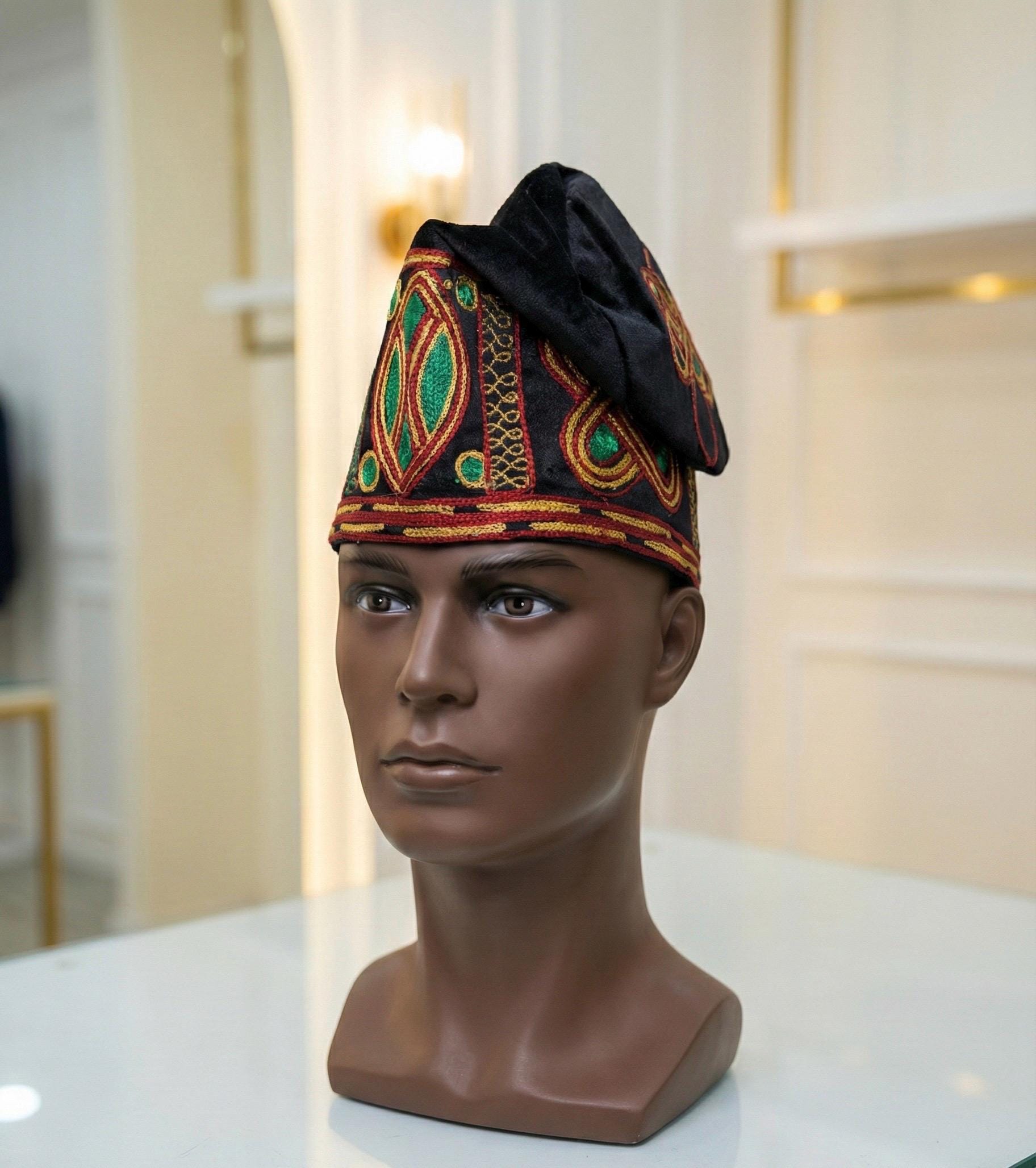 Embroidered Velvet Aso Oke Cap | Nigerian Fila Ijebu