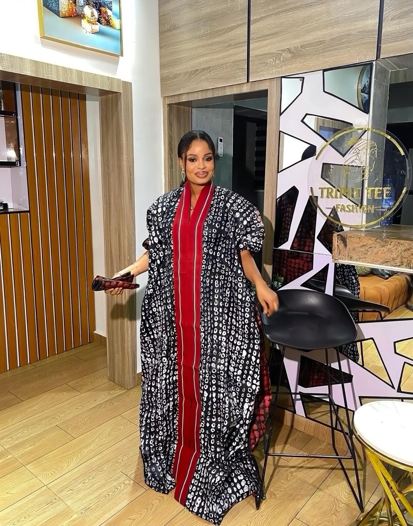 The outer layer, adorned with intricate Adire patterns created through traditional resist dyeing techniques, exudes cultural charm and authenticity. Paired with the Aso Oke, woven with exquisite craftsmanship, this boubou offers a luxurious blend of textures and colors.