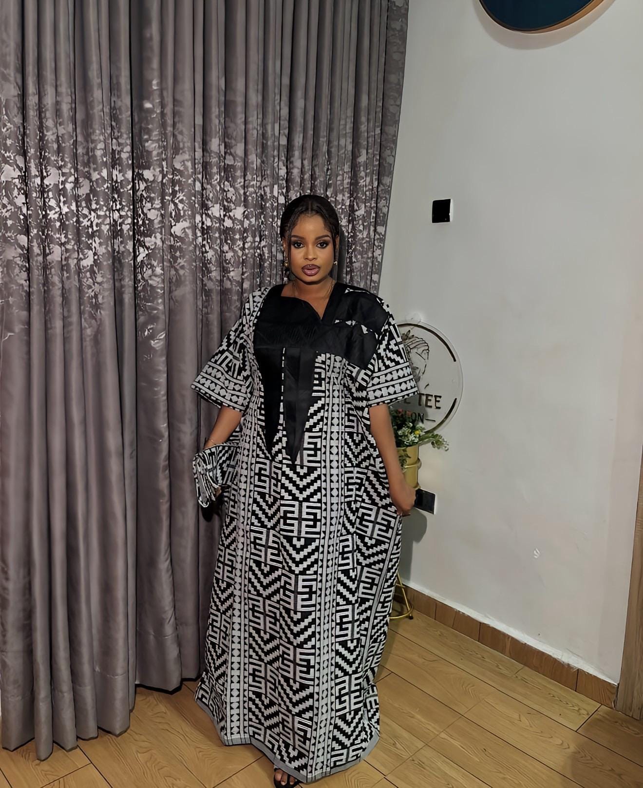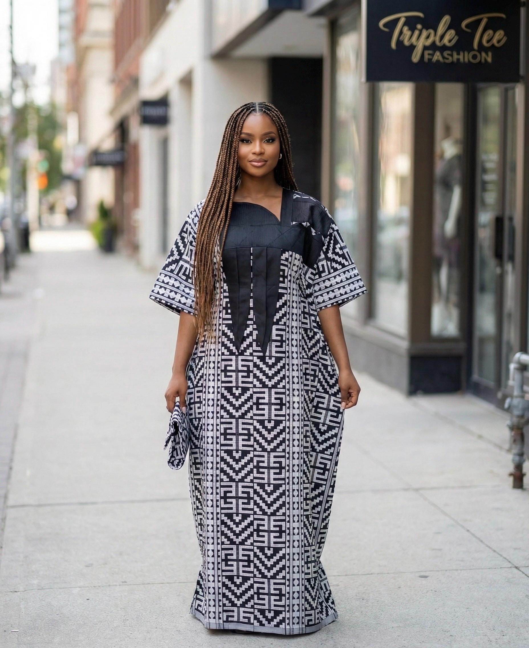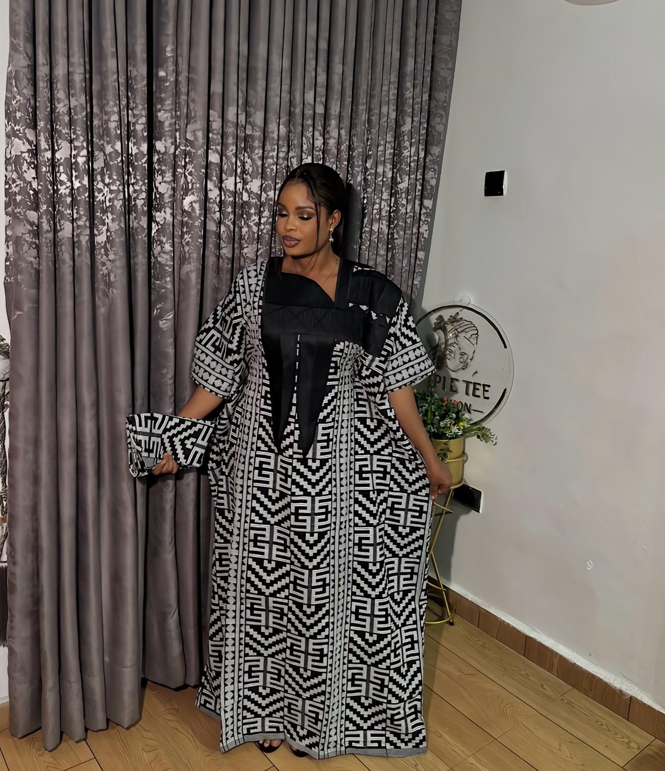 This elegant boubou is made from authentic Akwete fabric, a traditional handwoven textile originating from Nigeria, known for its bold patterns, durability, and cultural significance. Each piece reflects heritage craftsmanship and timeless African artistry.