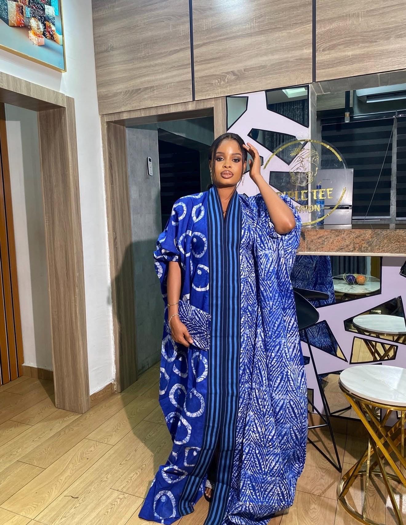 Our stunning Adire and Aso Oke boubou, a fusion of traditional Nigerian textiles and contemporary elegance. Crafted with meticulous attention to detail, this exquisite garment features a mesmerizing combination of Adire fabric and Aso Oke, celebrating the rich heritage of Nigerian craftsmanship.