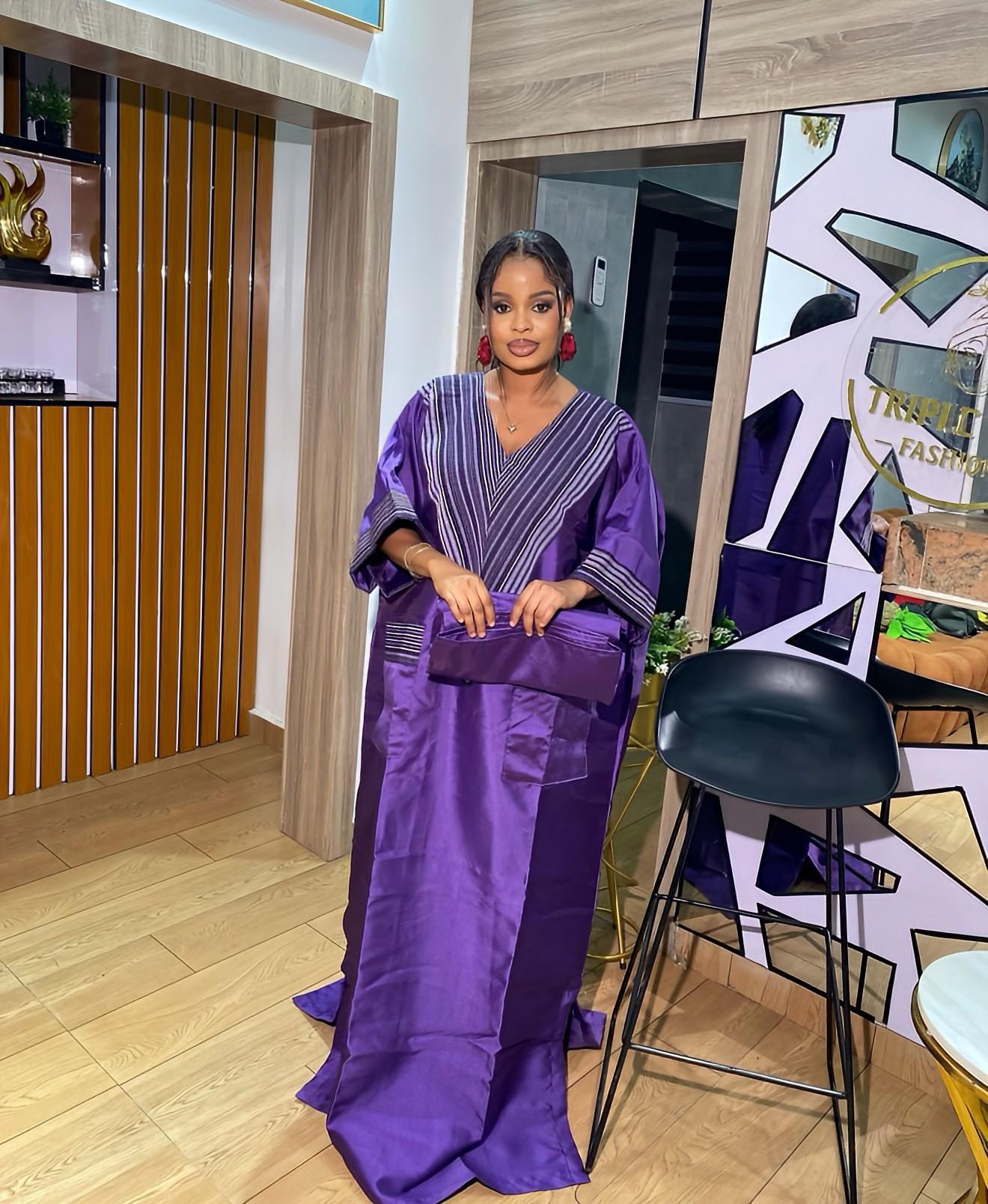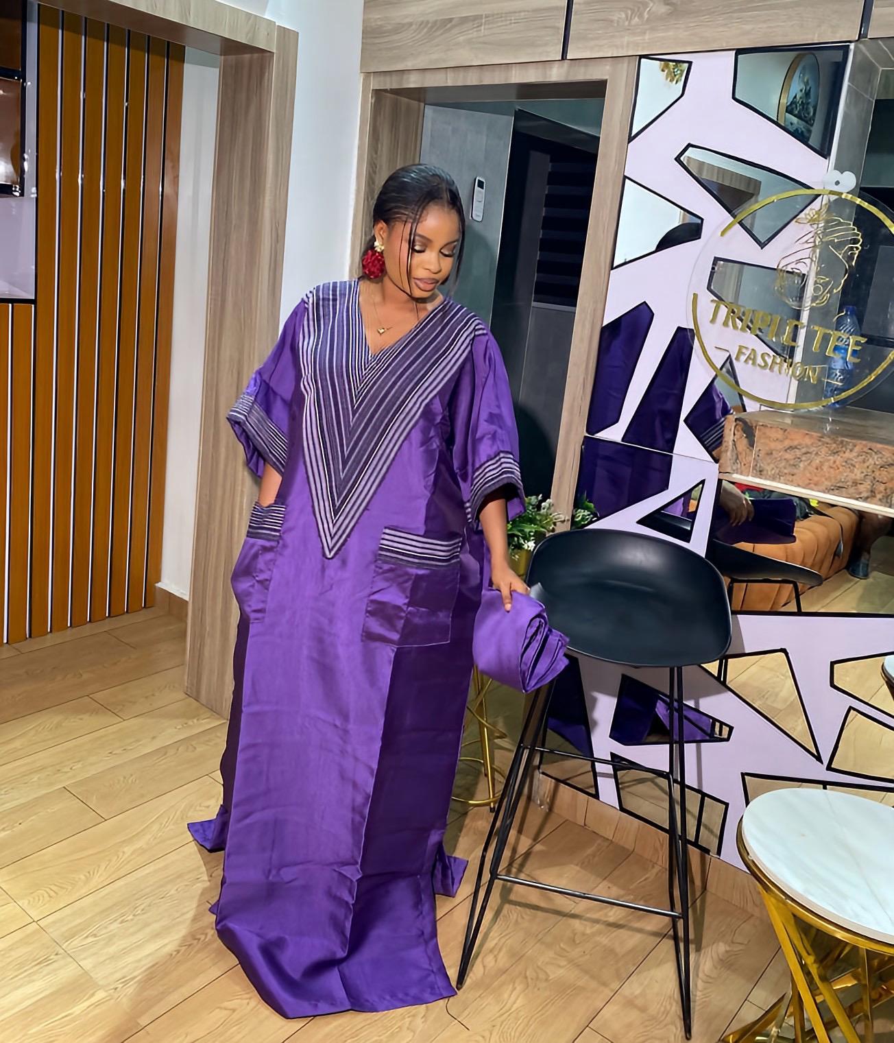 Outfit description - Made from mikado and aso oke. One size fits US size 8 to Size 24, It is a free size boubou.
