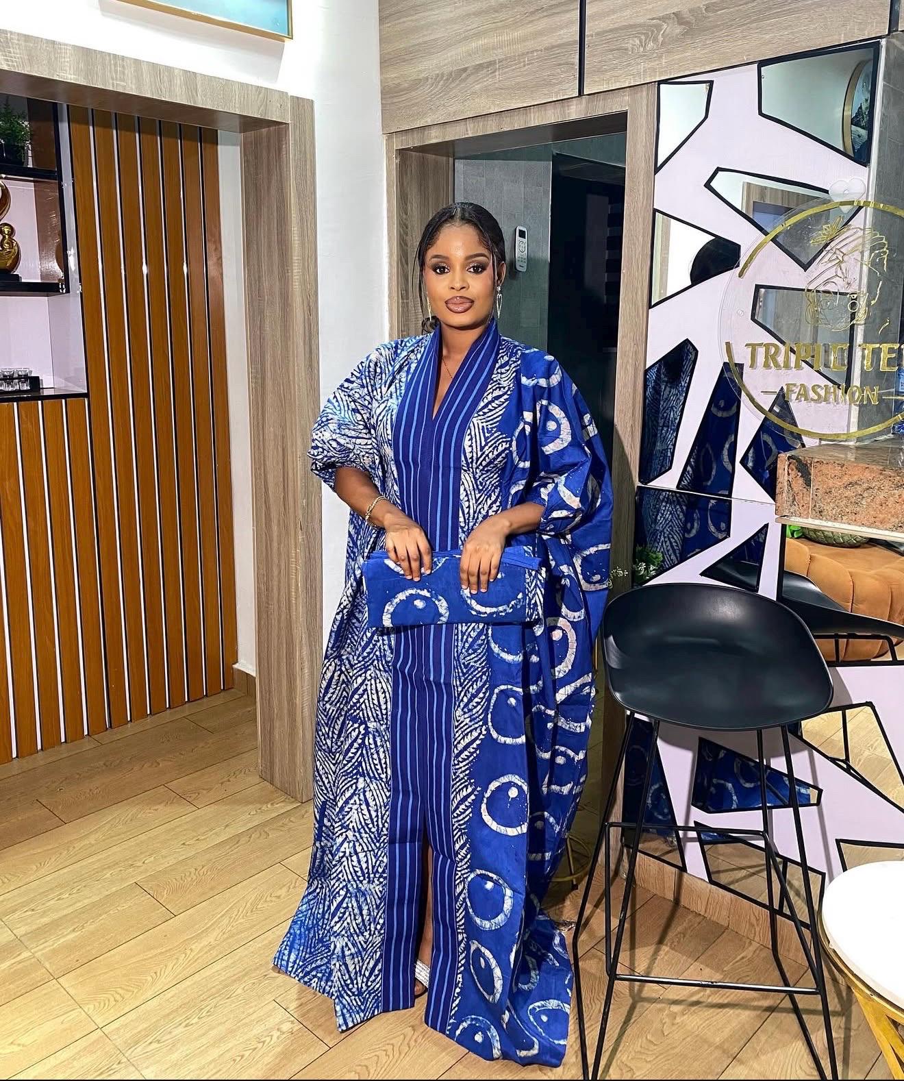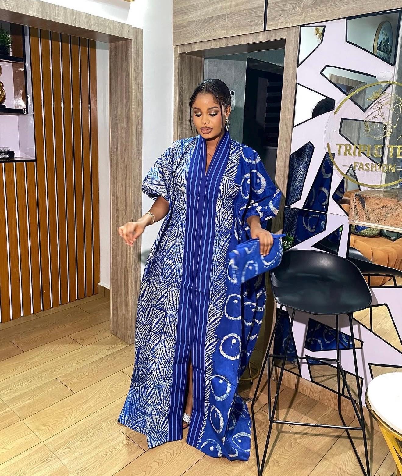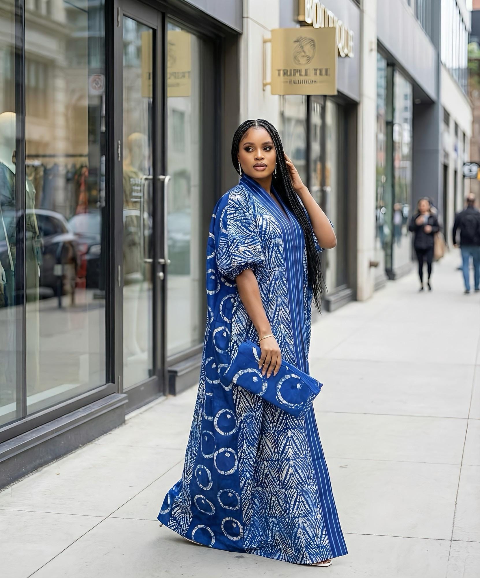 Our stunning Adire and Aso Oke boubou, a fusion of traditional Nigerian textiles and contemporary elegance. Crafted with meticulous attention to detail, this exquisite garment features a mesmerizing combination of Adire fabric and Aso Oke, celebrating the rich heritage of Nigerian craftsmanship.