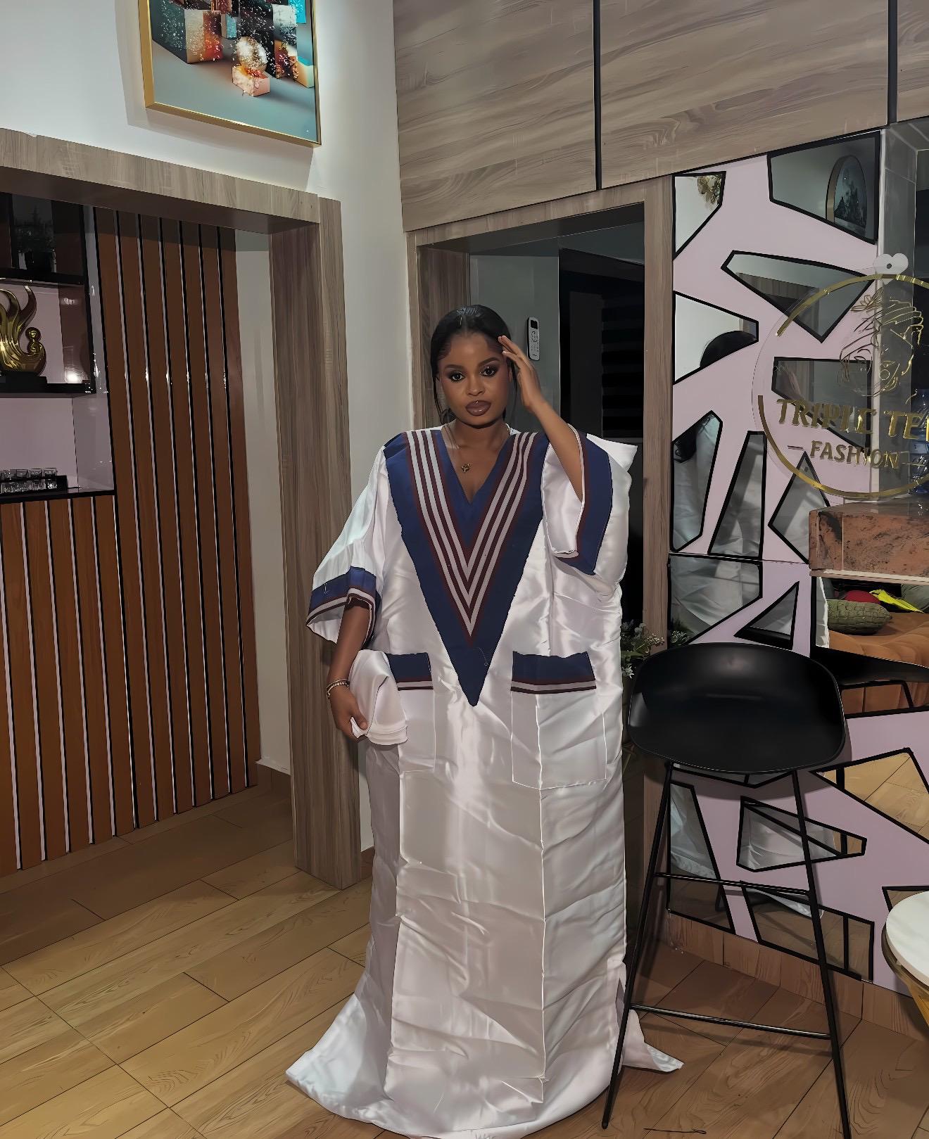 Outfit description - Made from mikado and aso oke. One size fits US size 8 to Size 24, It is a free size boubou.