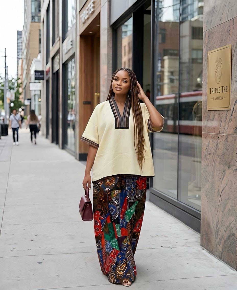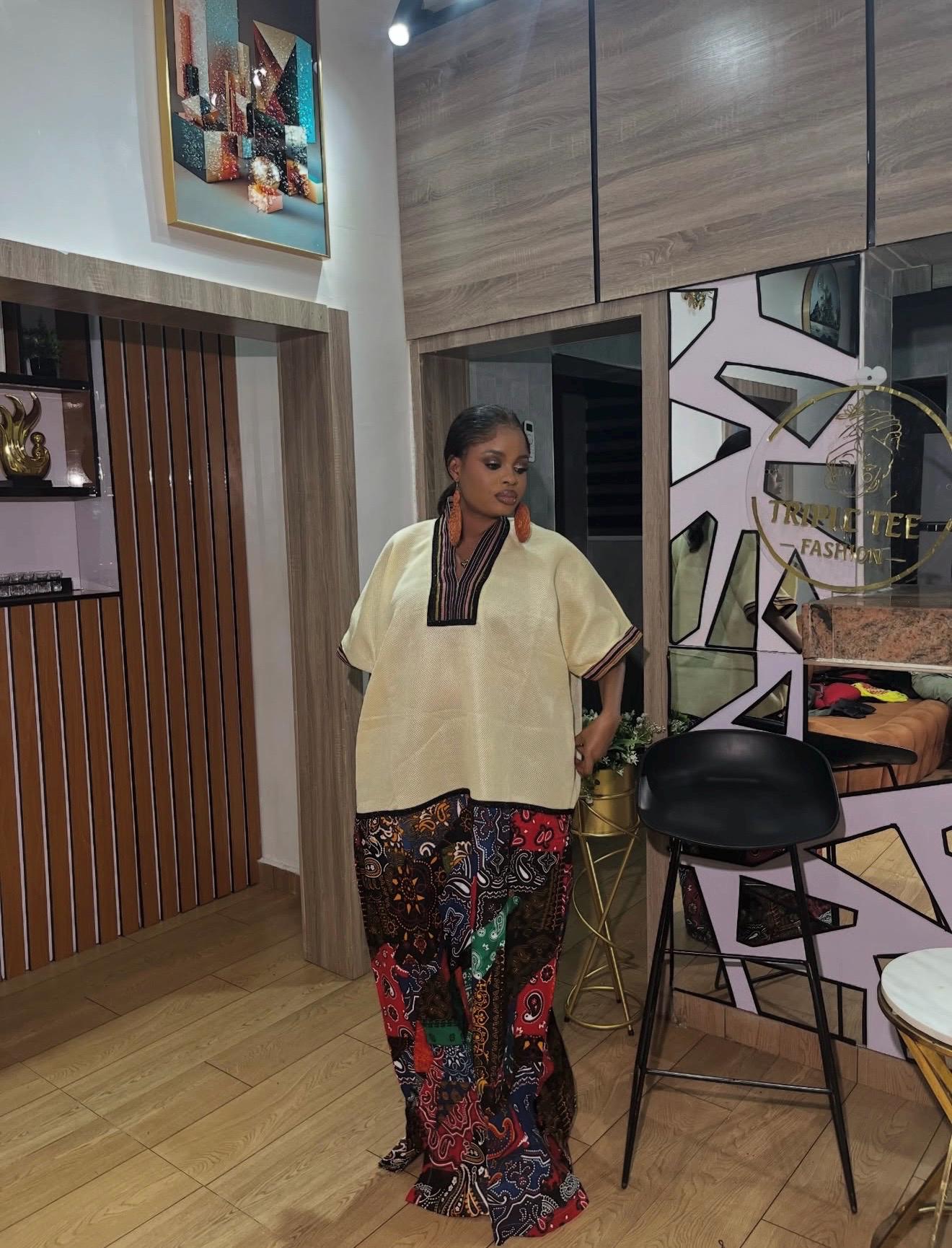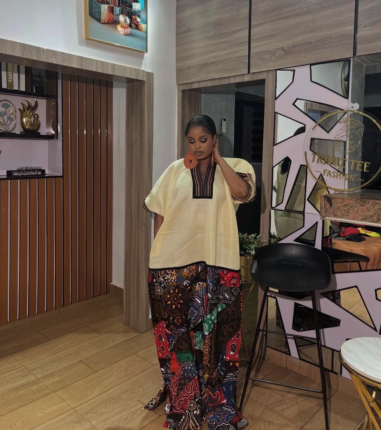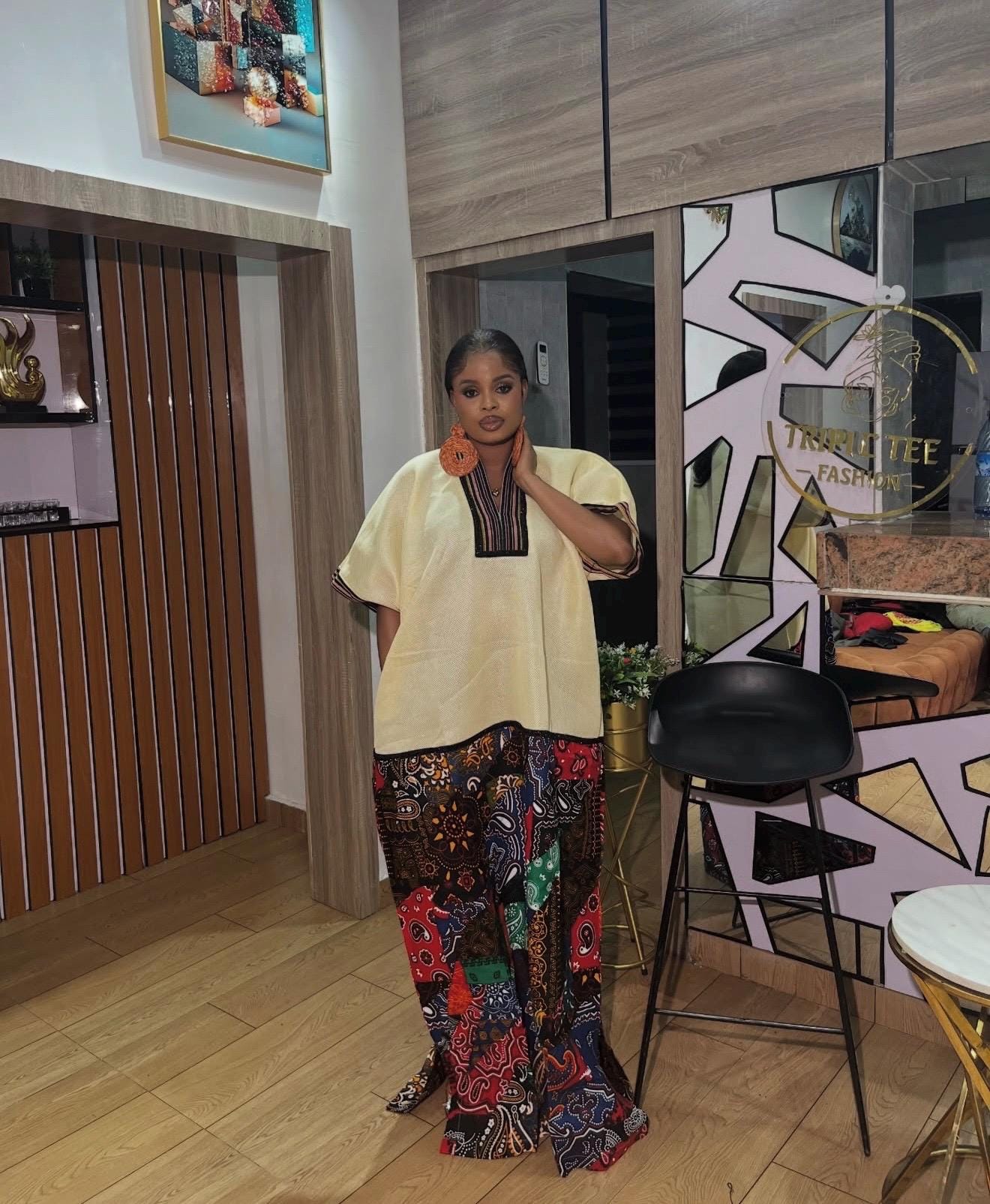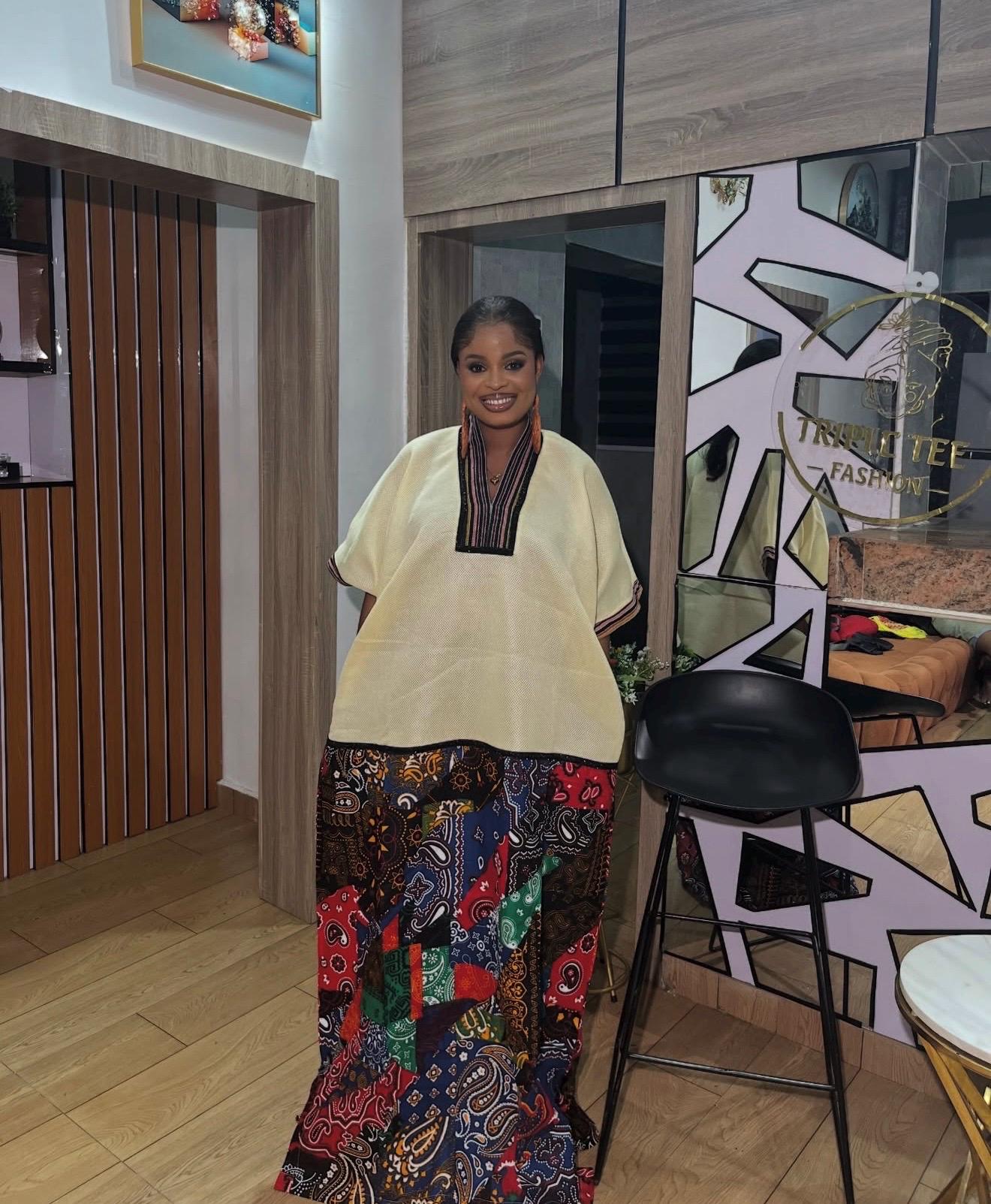 Designed as a free-flowing boubou, this piece drapes gracefully on all body types, offering comfort, confidence, and style in one timeless outfit.