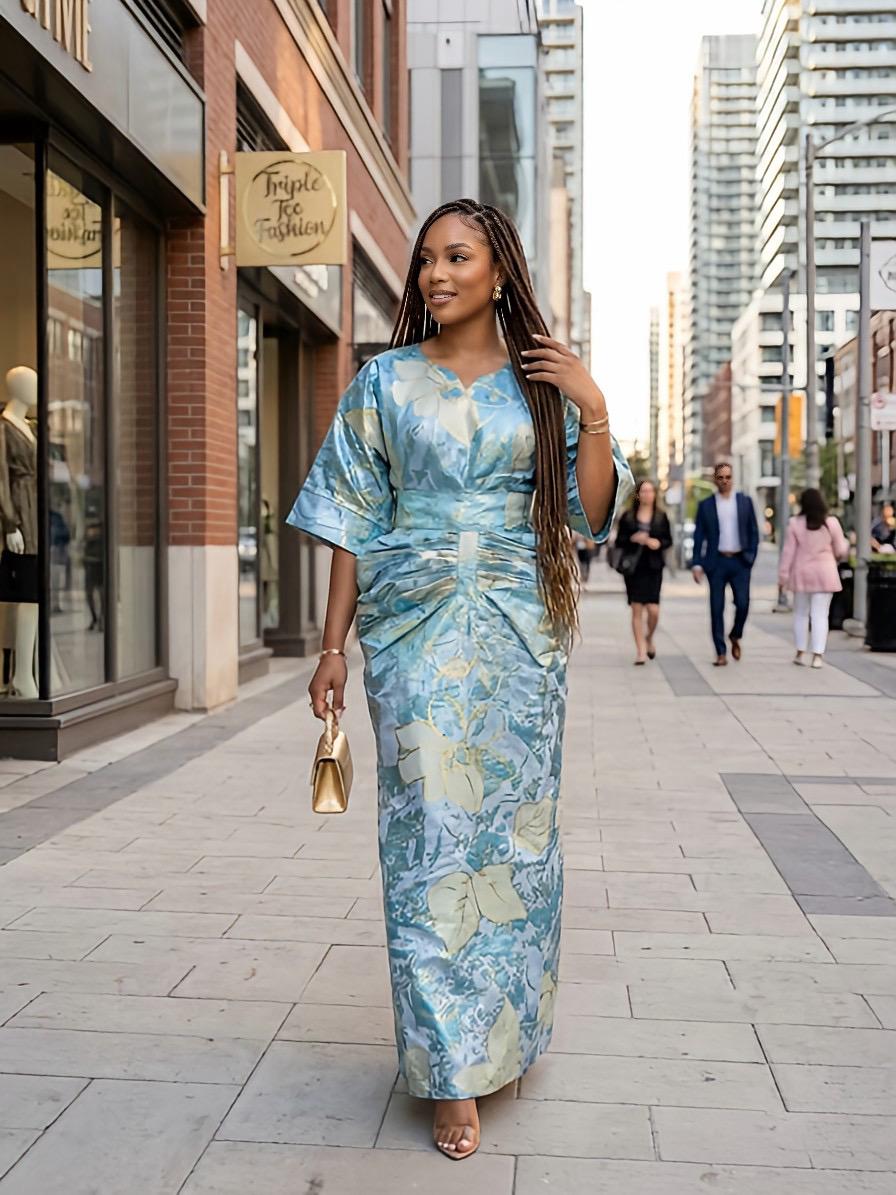 • Made with high-quality European brocade fabric • Elegant boubou / kaftan silhouette • Inner waist belt to shape and define the waist from inside • Outer belt detail for additional styling and structure • Comfortable yet luxurious structured drape • Perfect for weddings, owambe, special occasions, and celebrations