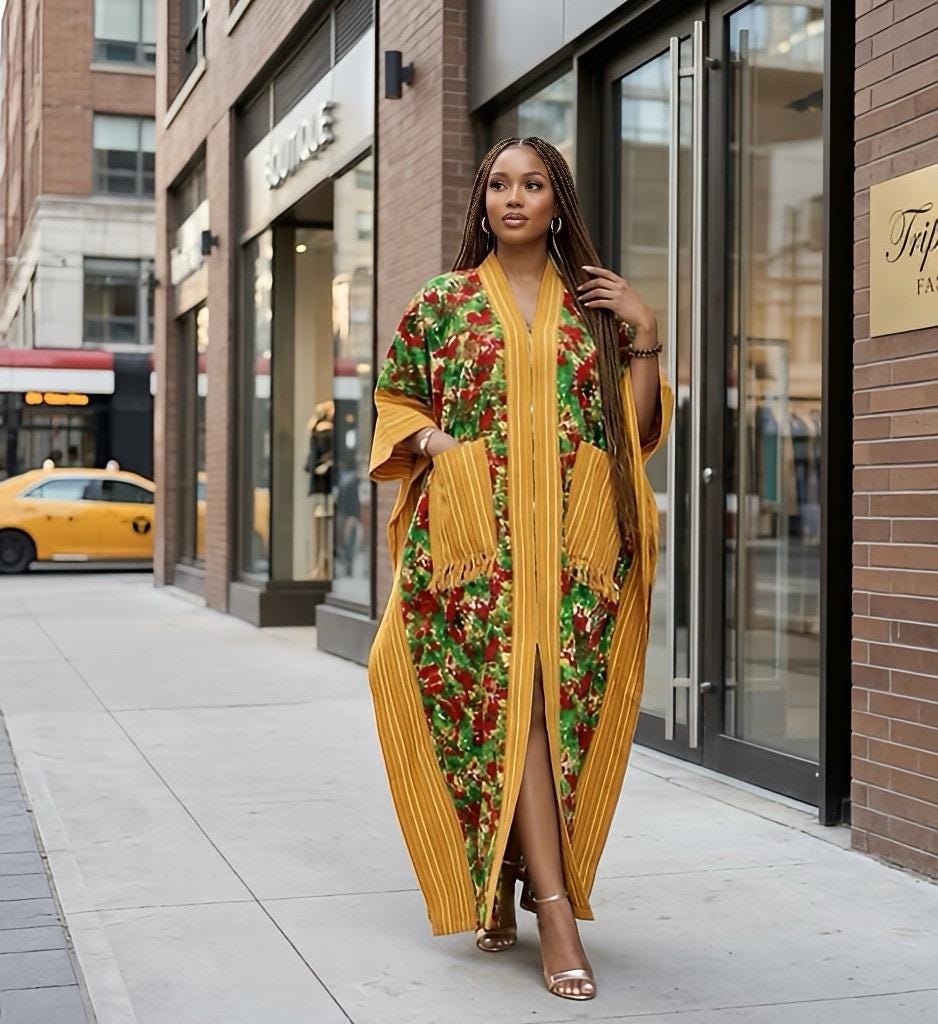 Handmade Ankara Brocade Kaftan Dress | African Print Boubou with Headtie