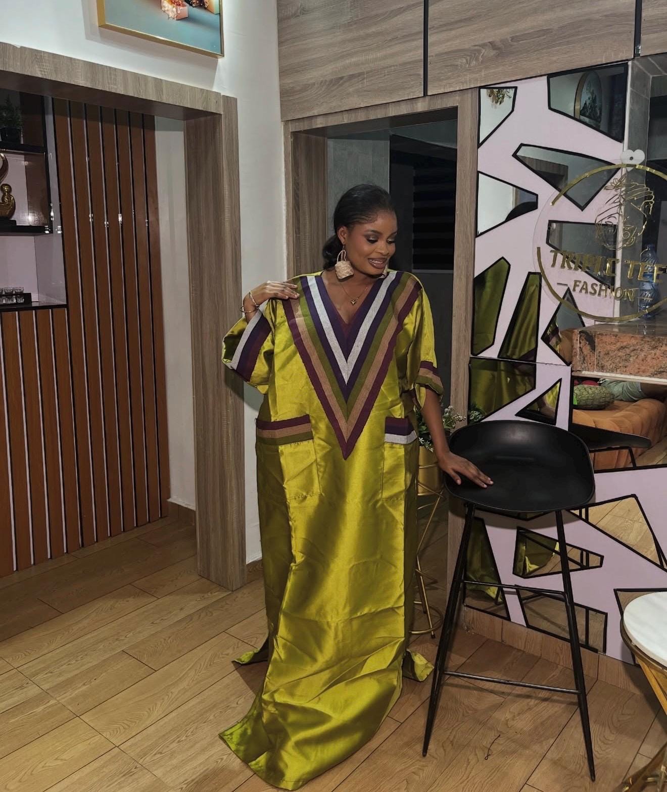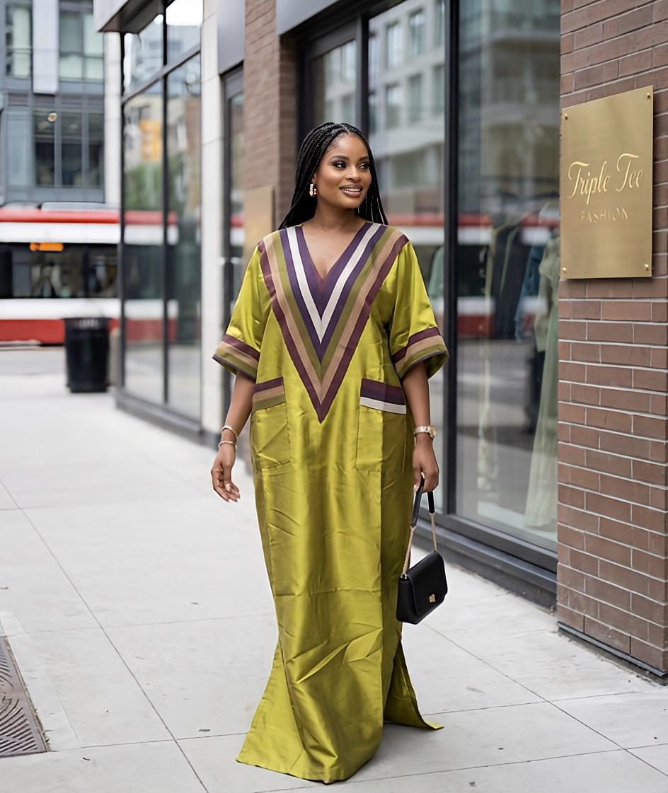 Fabric - Made with luxurious high quality mikado fabric with African Aso Oke in the neck area.